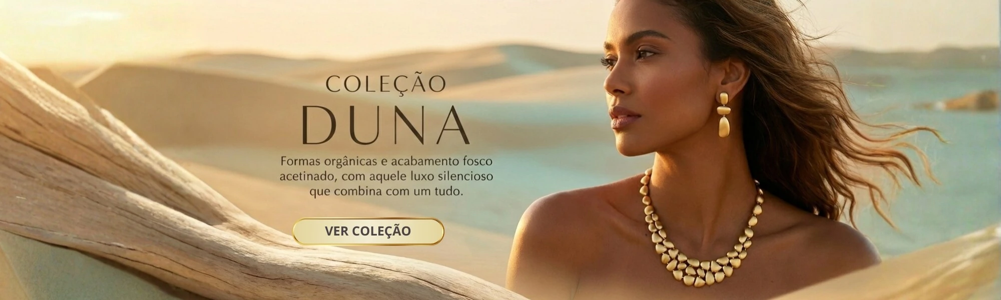 Colar Duna Orgânico Fosco Banho de Ouro 18 K