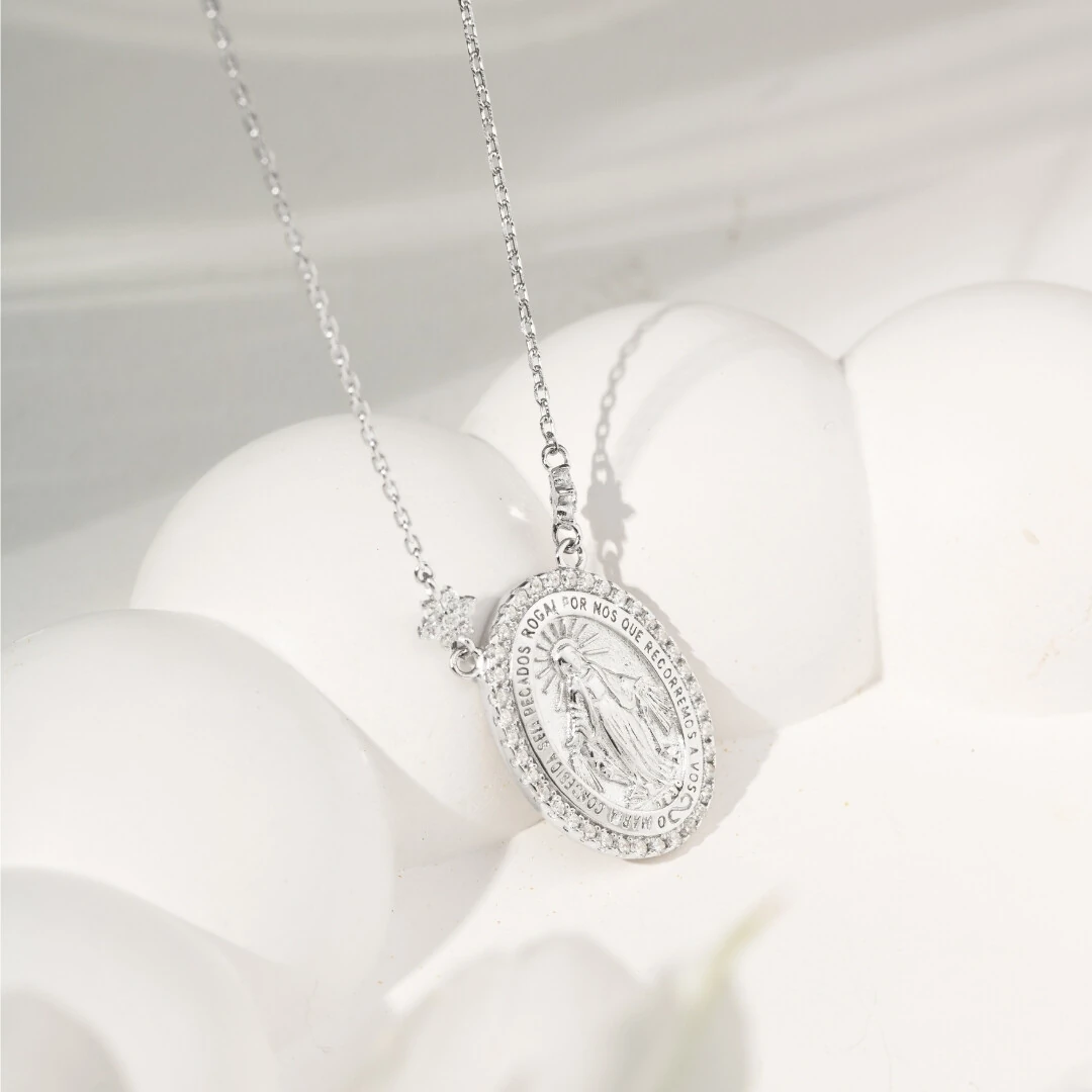 Este colar é mais do que uma joia de moda; é um símbolo poderoso de proteção e fé. Ao usá-lo, você carrega consigo a graça e a proteção da Virgem Maria, sentindo-se mais conectado com sua espiritualidade e crenças.