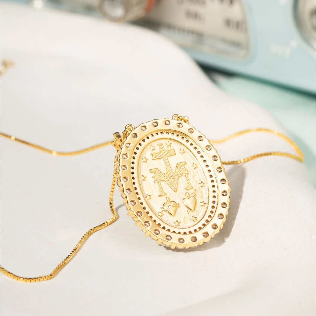 A medalha, com medidas de 1,8 x 2,2 cm, apresenta a imagem de Nossa Senhora das Graças, cercada por pedras de zircônias AAA que brilham com intensidade, adicionando um toque de luxo e refinamento. O banho de ouro 18K sobre a prata 925 não só realça a beleza da peça, mas também oferece durabilidade e resistência ao desgaste, garantindo que o colar mantenha seu esplendor ao longo do tempo.