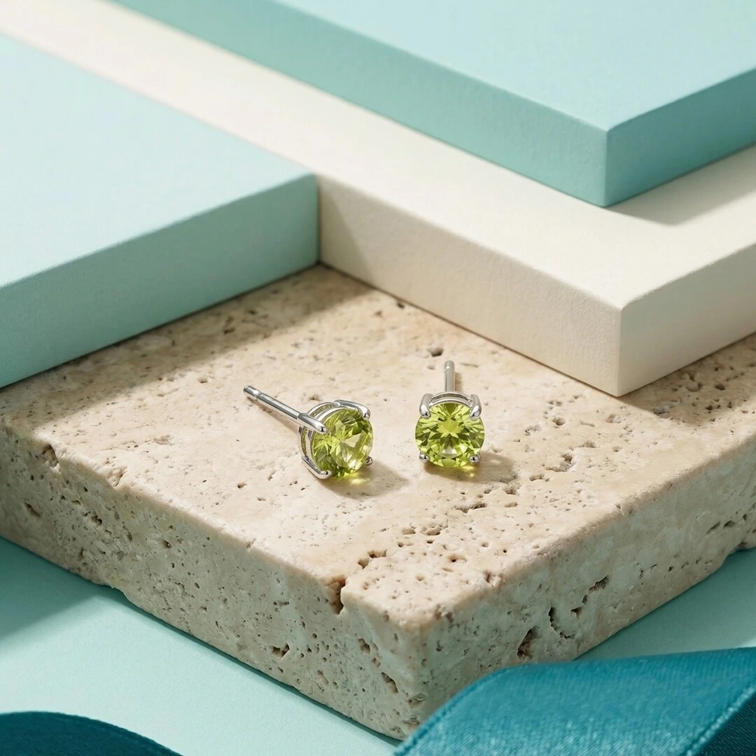 Brinco Solitário 6 MM Apple Green Prata 925