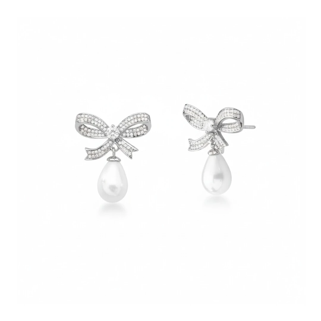 Brinco Laço com Pérola em Ródio Branco - Modernidade e Delicadeza