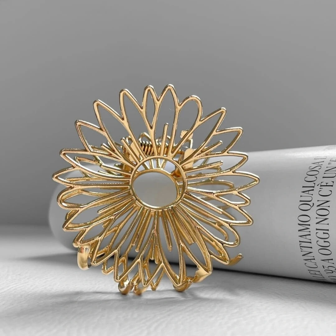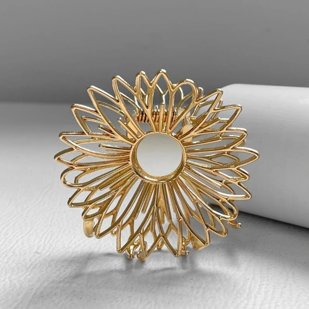 Piranha Girassol Metal, o mais novo sucesso em acessórios de cabelo que você vai amar! Na categoria de Acessórios de Cabelo > Piranhas, esta piranha se destaca pelo seu design exclusivo em formato de girassol, trazendo um toque de alegria e modernidade ao seu visual.