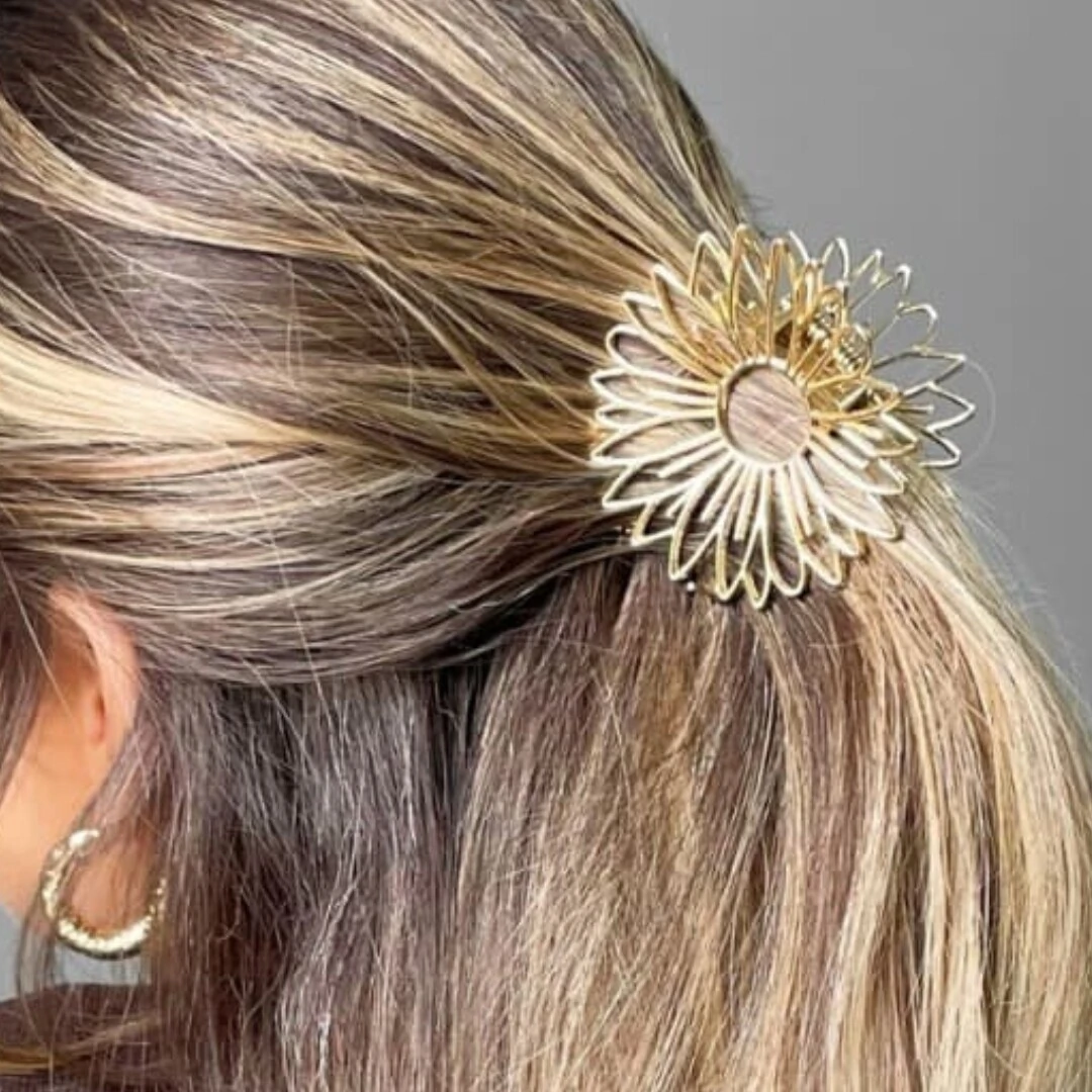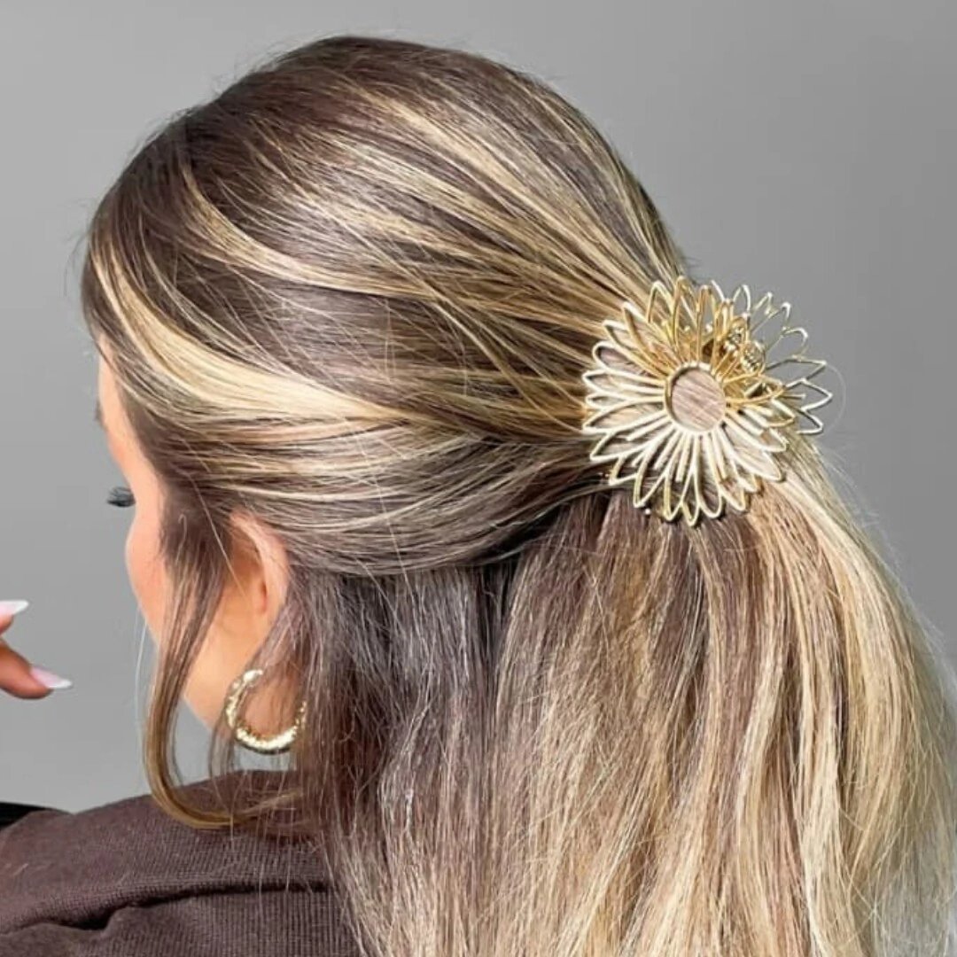 A Piranha Girassol Metal é ideal para mulheres que adoram acessórios de cabelo estilosos, práticos e modernos, que complementam seus looks com um toque de originalidade e elegância.