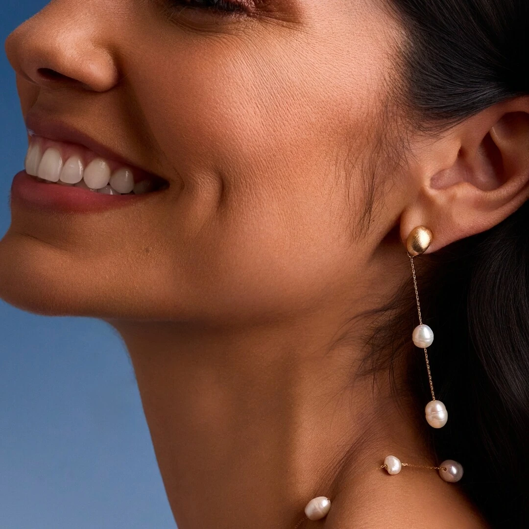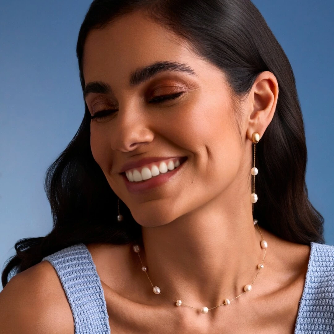 Com design alongado e delicadas pérolas dispostas em sequência, ele une sofisticação e leveza em uma peça atemporal.