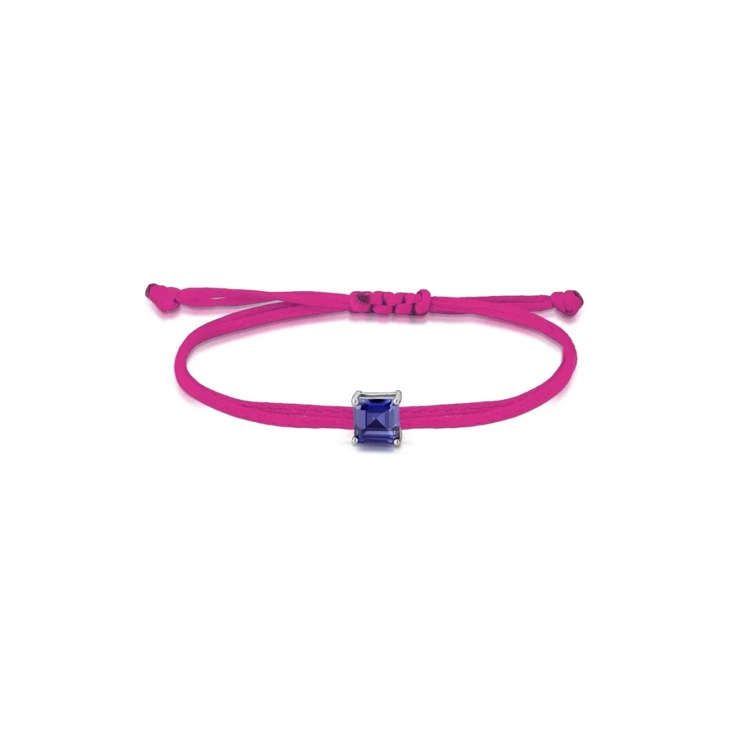 A Pulseira Regulável com Fio Encerado Pink e Pedra Quadrada Tanzanita em Prata 925 combina cor, brilho e leveza em um acessório cheio de personalidade.