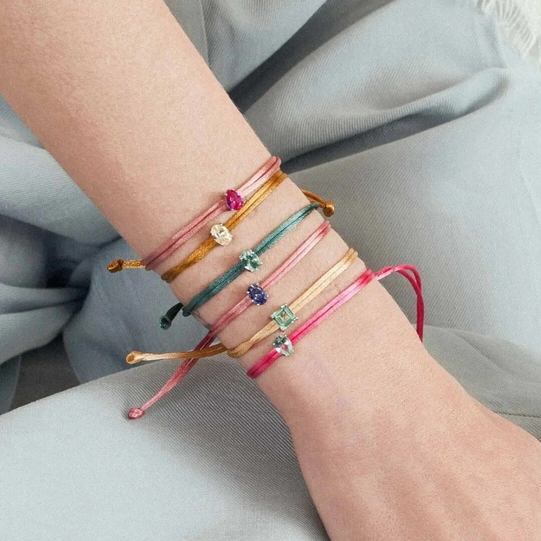 A Pulseira Regulável com Fio Encerado Amarelo e Pedra Quadrada Verde Paraíba em Prata 925 é o equilíbrio perfeito entre alegria e elegância.