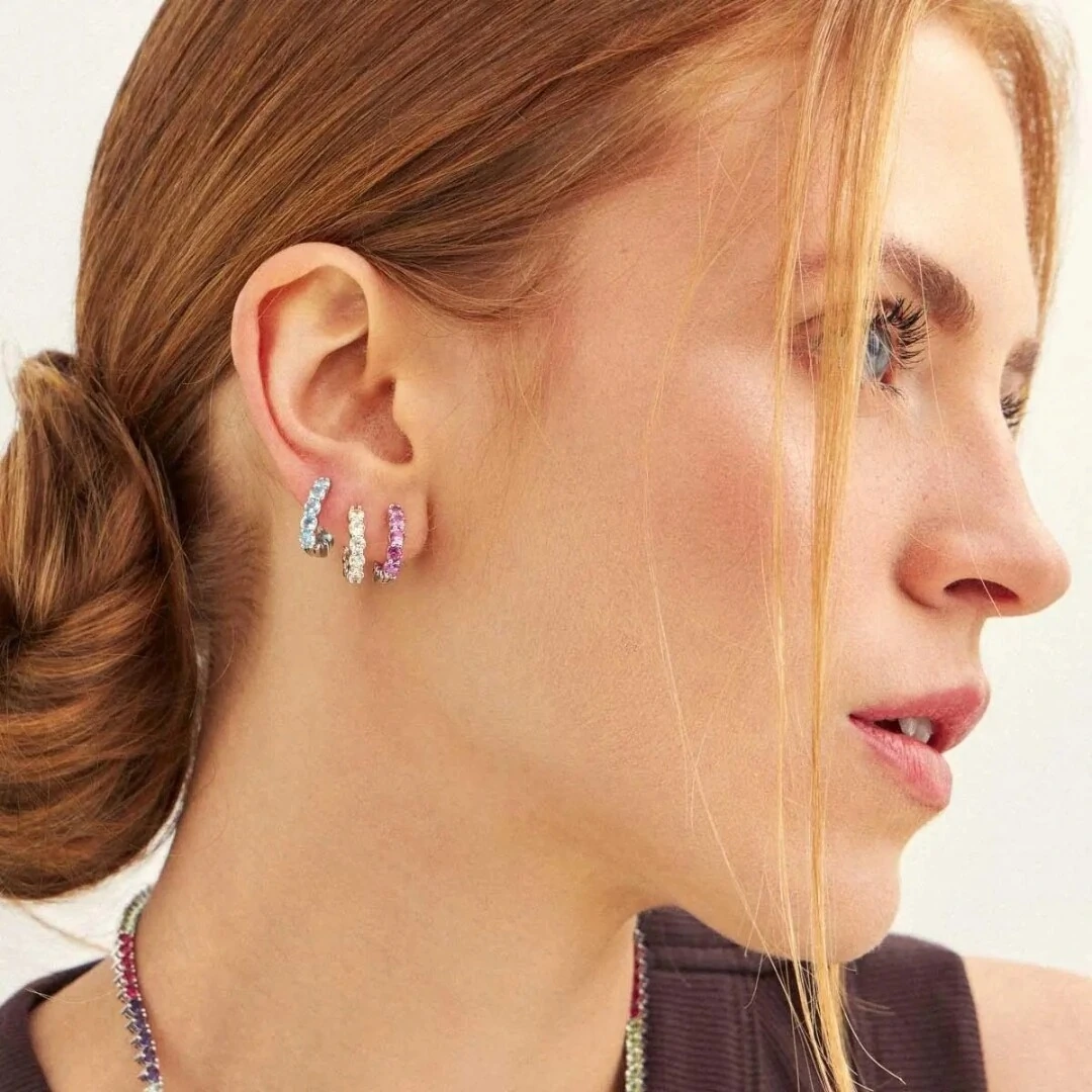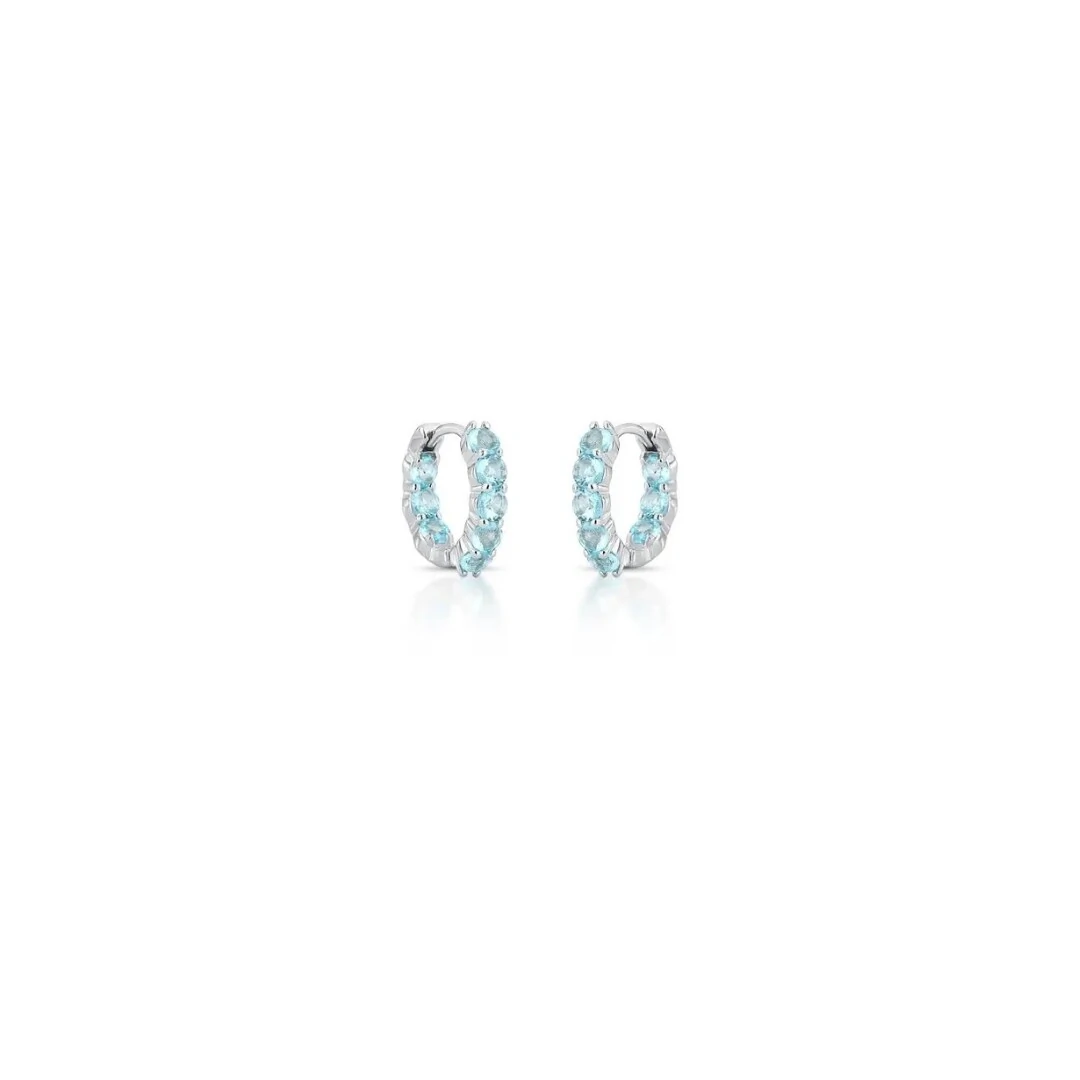 A Argola 15 mm Água Marinha em Ródio Branco combina o frescor das pedras azul-claro com o brilho refinado do ródio branco.