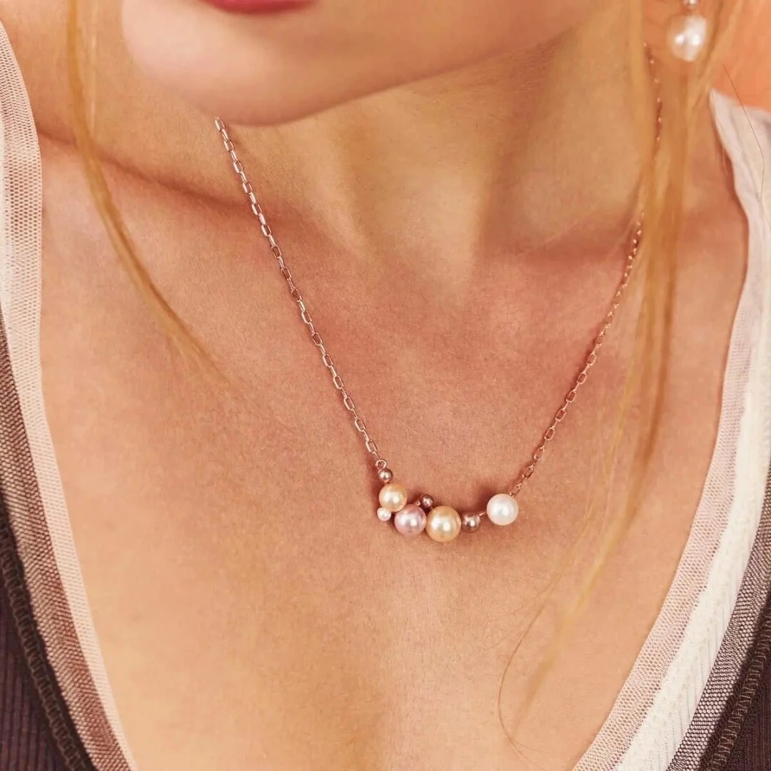 O Colar Curvo Pérolas Coloridas Intercaladas Banho Rosê é a tradução do equilíbrio entre delicadeza e modernidade.