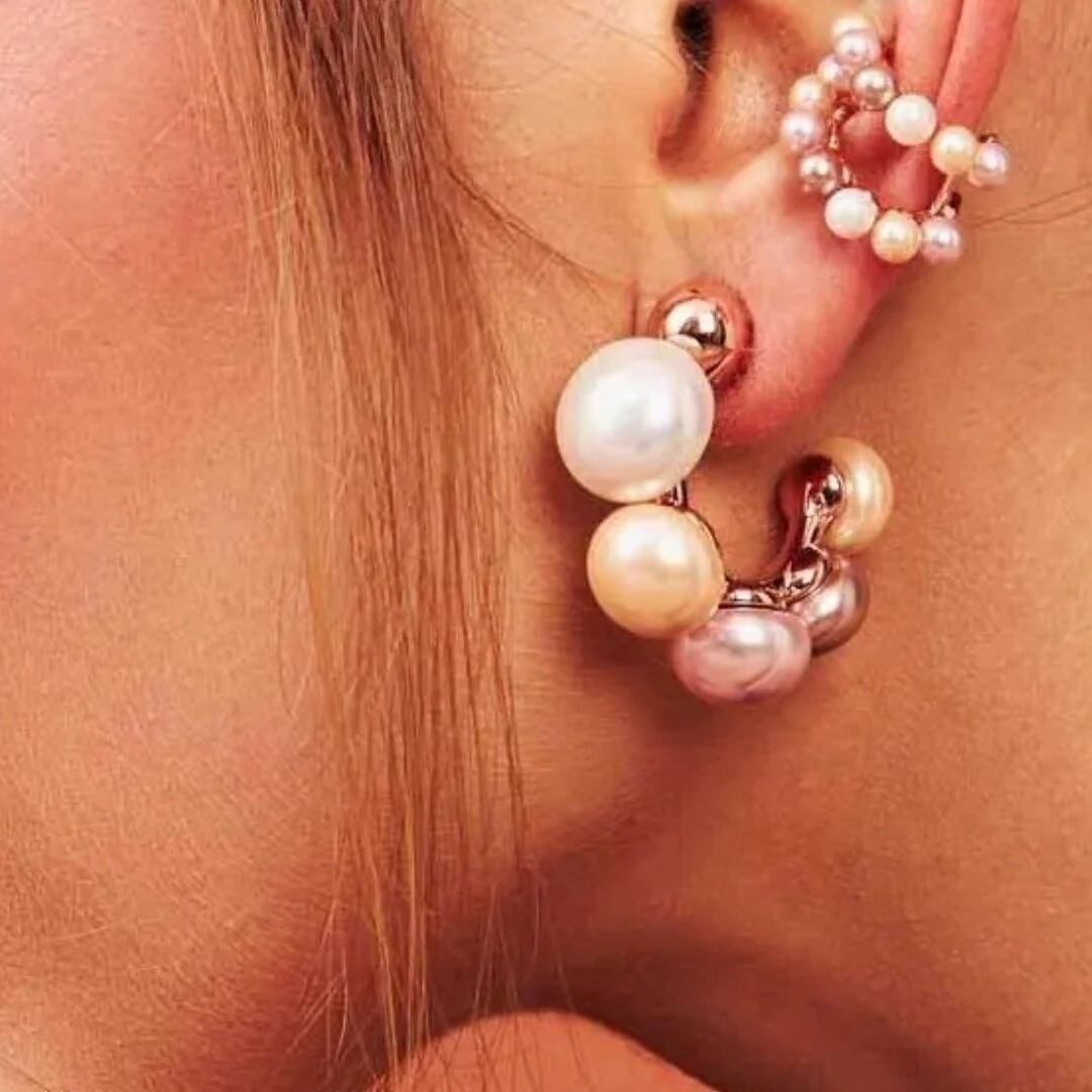 Com pérolas shell em tons suaves de branco, rosa, pêssego e cinza, ela traz um ar moderno e elegante — uma versão atualizada da tradicional argola.