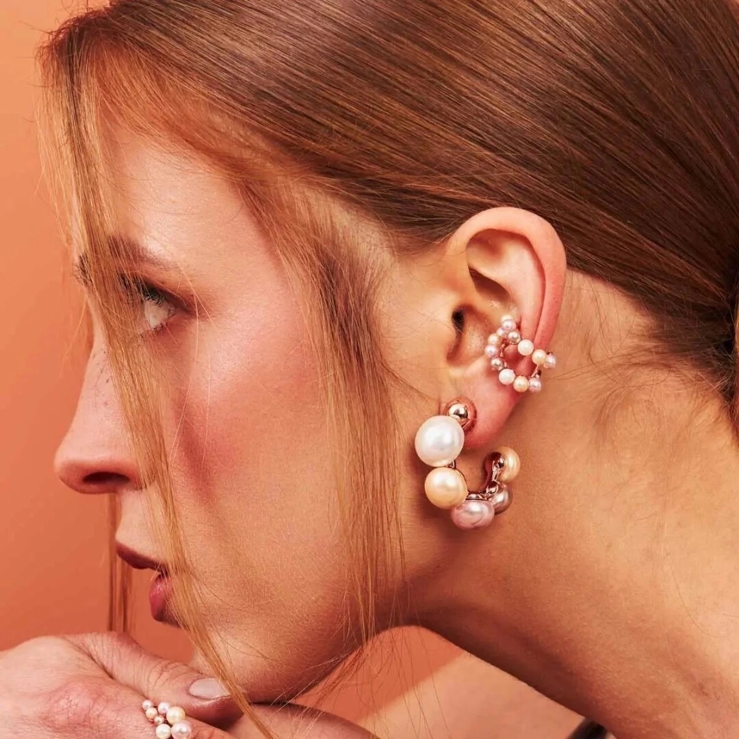 A Meia Argola Max Pérolas Coloridas Banho Rosê é o equilíbrio perfeito entre o clássico e o contemporâneo.