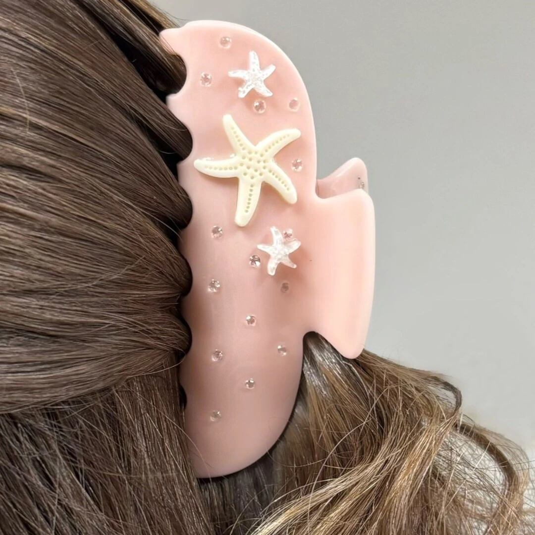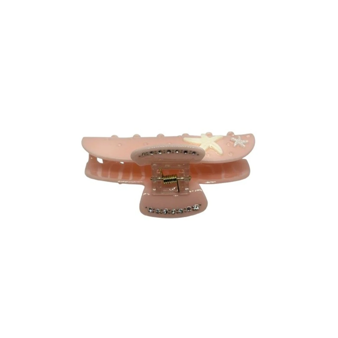 Feita à mão em acetato rosa perolado de alta qualidade, traz aplicações delicadas de estrela do mar e cristais zircônia, criando um brilho suave e elegante.