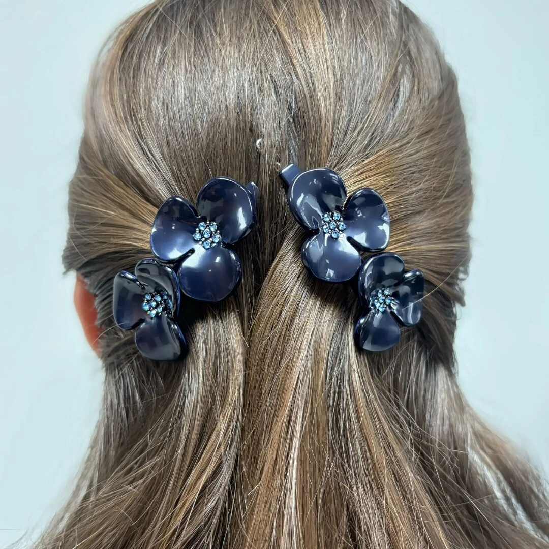 O Clipe Trevo Duplo Acetato Azul Marinho é aquele acessório que eleva instantaneamente o visual. 💙✨