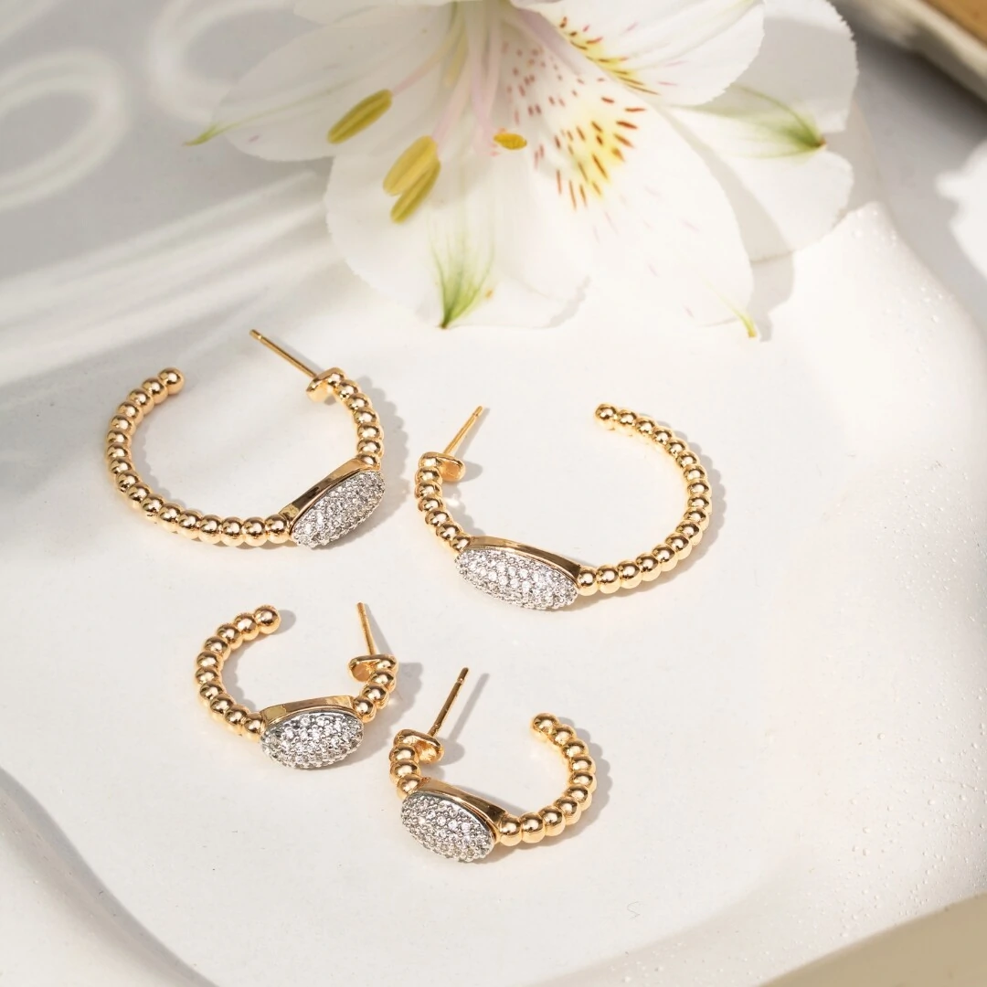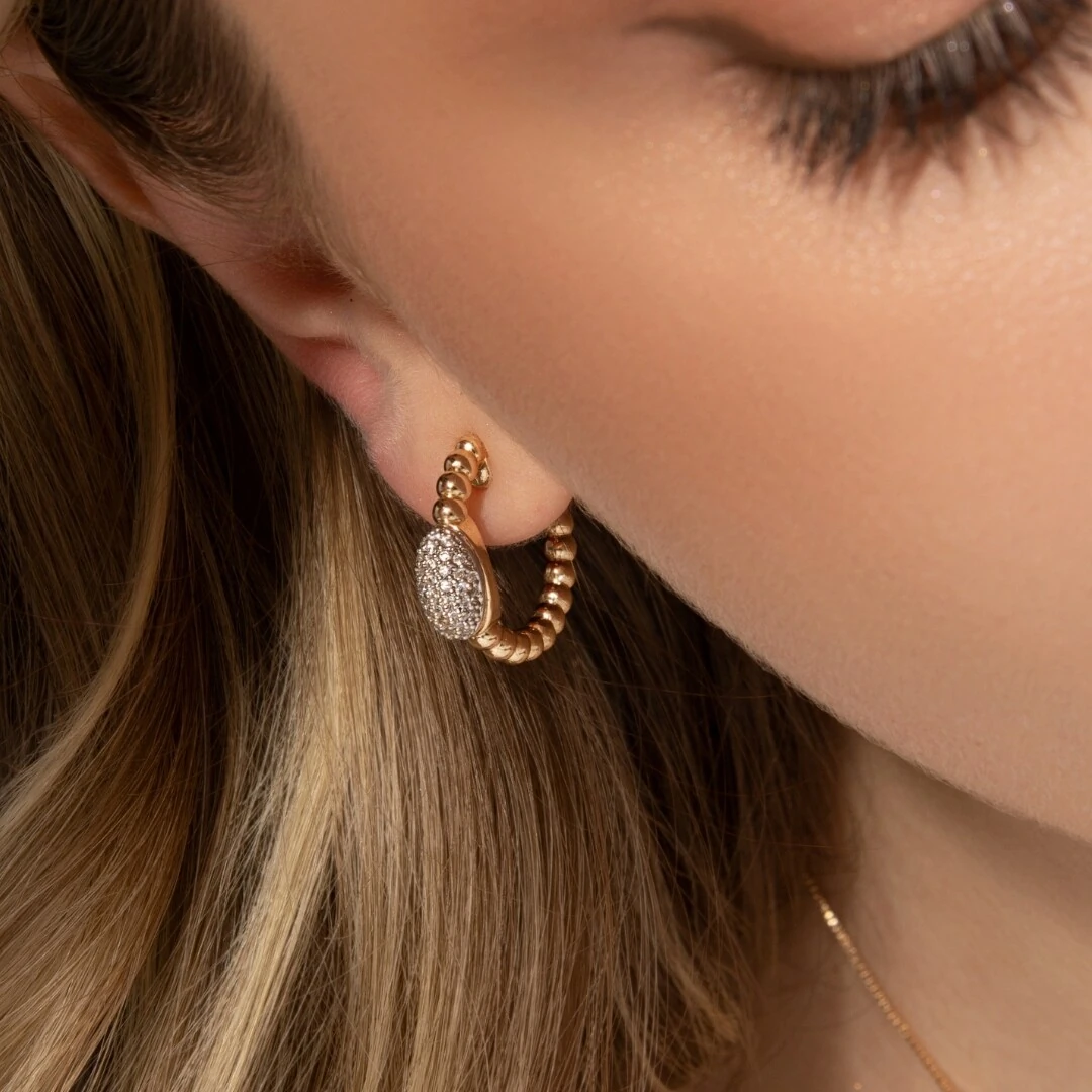A Argola Bolinhas Oval Cravejado M é daquelas peças que conquistam pela delicadeza e brilho discreto. O banho de ouro 18K dá o toque sofisticado, enquanto o detalhe oval cravejado com zircônias traz um ar moderno e leve.