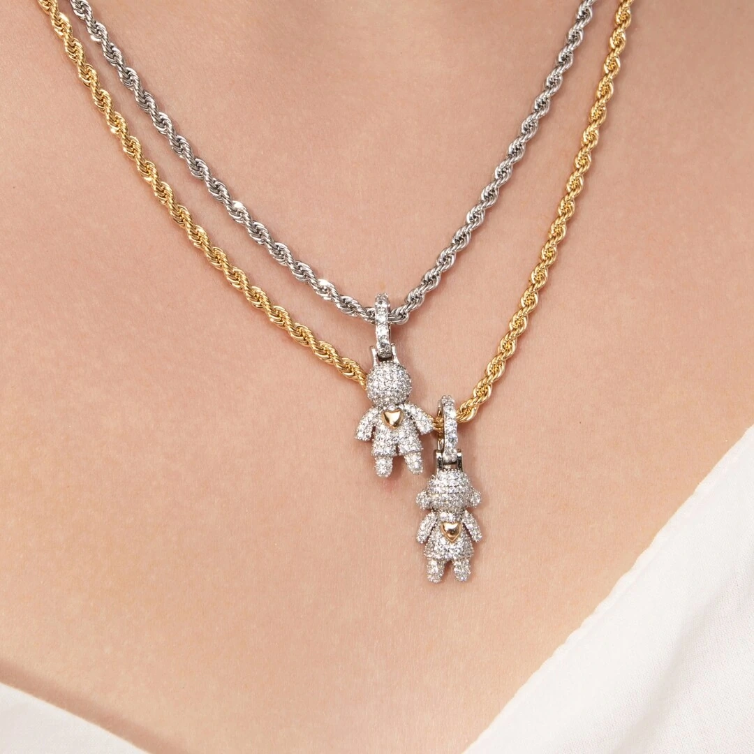 O Pingente Menina Cravejada Coração Dourado Prata 925 é uma joia delicada e cheia de significado. Toda cravejada com zircônias, ela traz um pequeno coração dourado no centro — um detalhe encantador que simboliza carinho e conexão.