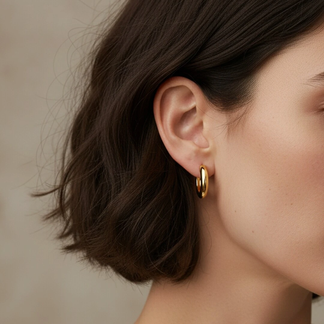 A Argola Tubo Lisa M Banho de Ouro 18K é o clássico indispensável que combina com tudo — do look casual ao mais elegante.