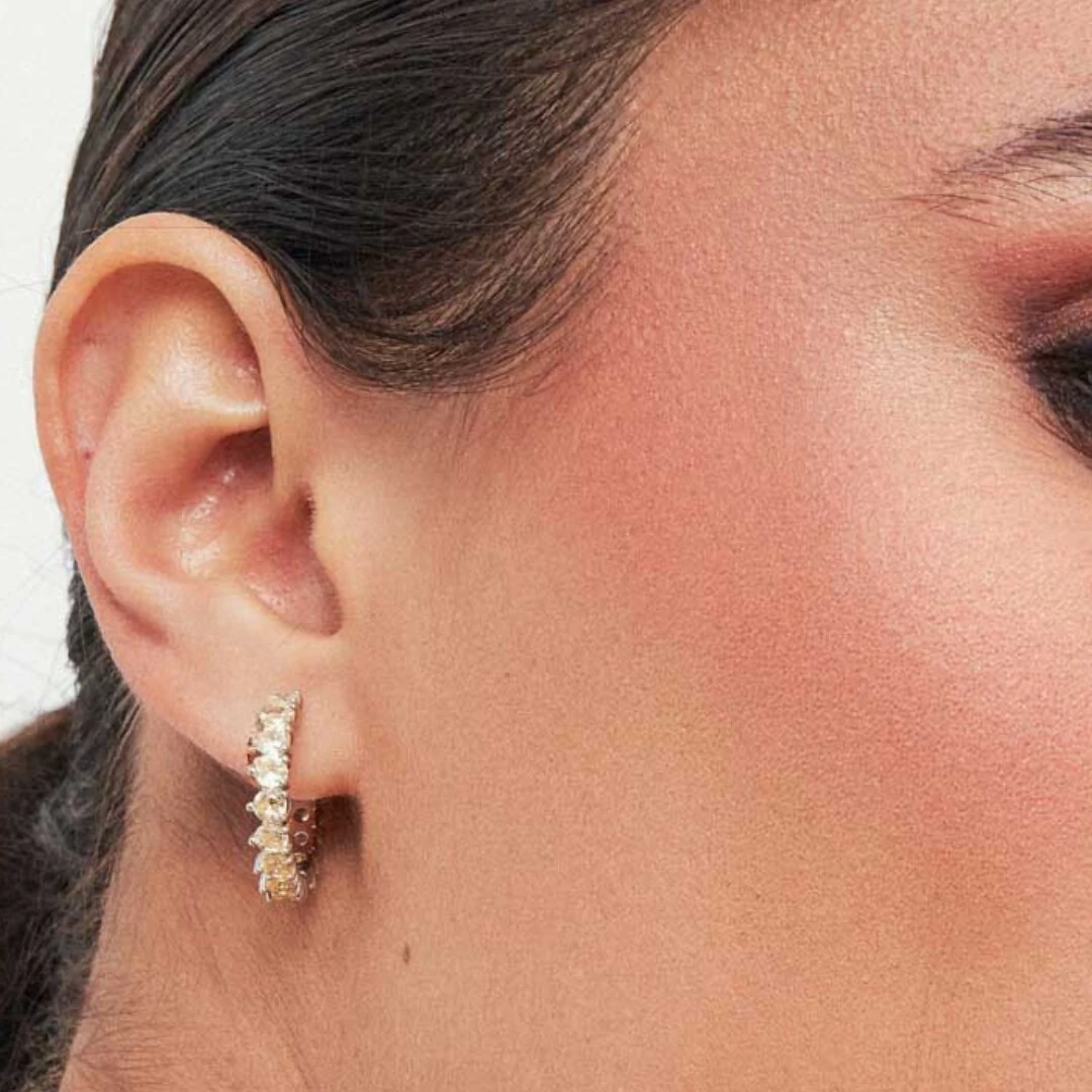 A Argola Riviera Amarelo Banho de Ródio Branco é sinônimo de elegância com um toque de cor.