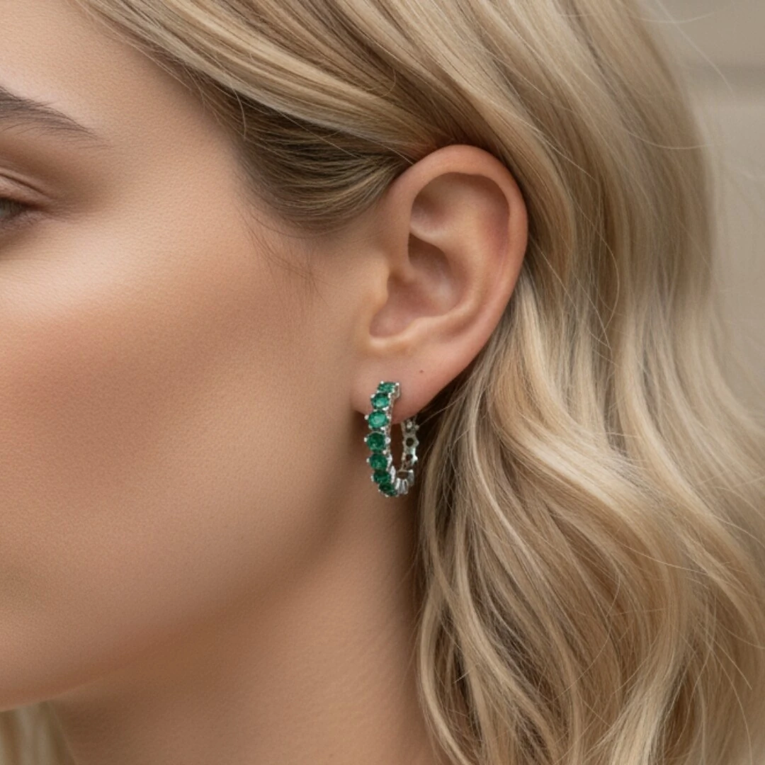 Argola Riviera Verde Esmeralda Banho de Ródio Branco é pura sofisticação.