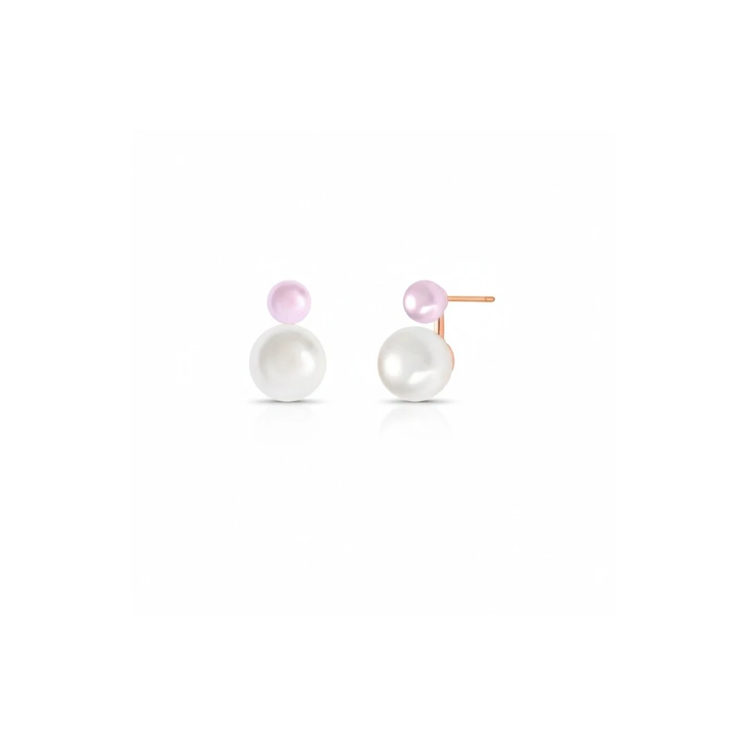 O Brinco Duo de Pérolas Coloridas G Banho de Ouro Rosê é puro charme com um toque contemporâneo.