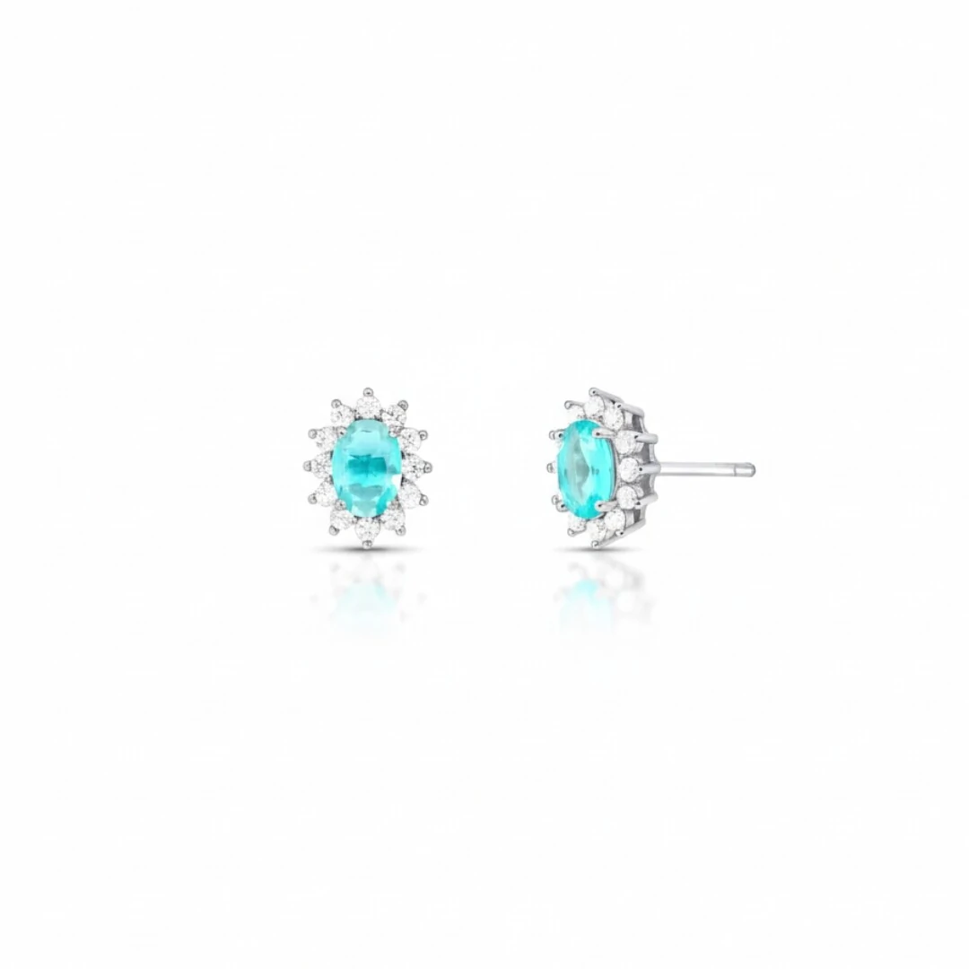 O Brinco Oval Turmalina Paraíba Cravação Princesa em Ródio Branco é a definição de sofisticação e brilho.