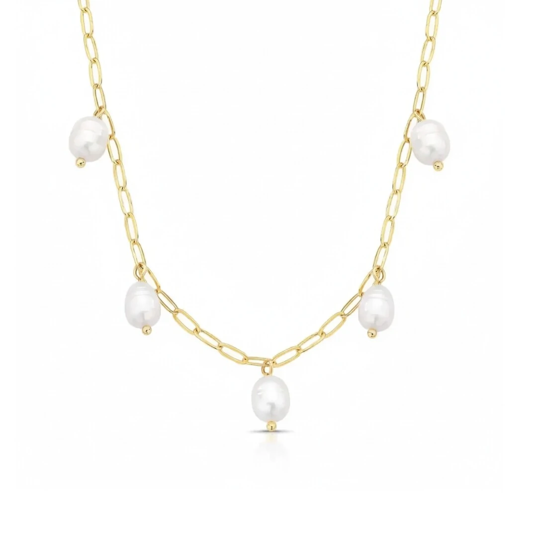 O Colar Elos com Pérolas de Água Doce Banho de Ouro 18K é a união ideal entre sofisticação e estilo contemporâneo.
