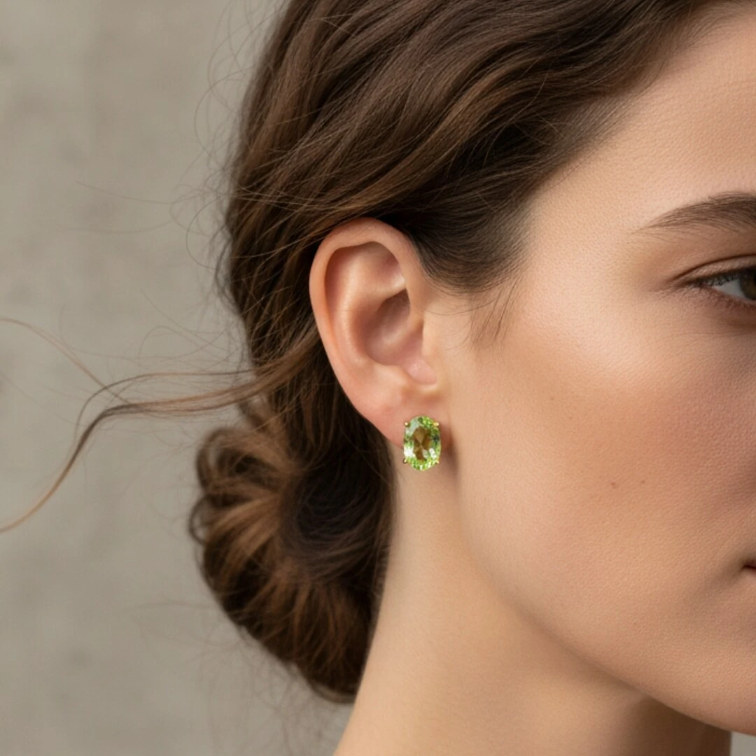Com lapidação oval que realça o brilho da pedra e banho de ouro 18K, a peça é ideal para quem busca elegância natural e um toque de frescor no visual.