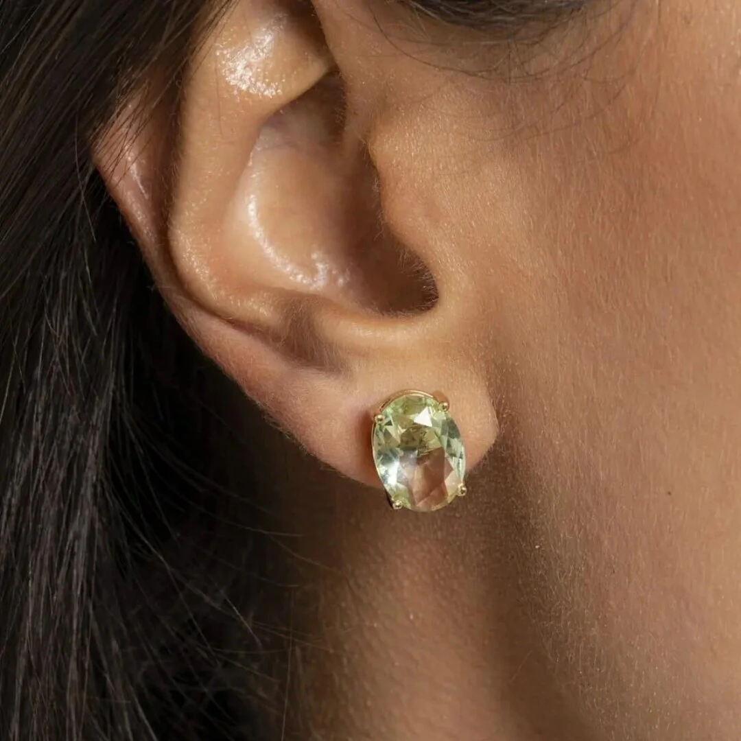 O Brinco Oval Prasiolita Banho de Ouro 18K é a tradução perfeita de leveza e sofisticação.