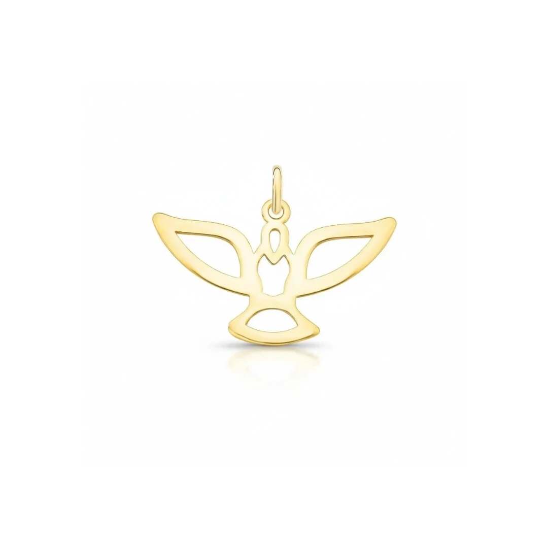 Com design vazado e linhas suaves, o formato do Espírito Santo transmite leveza e harmonia, tornando o pingente ideal para composições cheias de propósito e estilo.