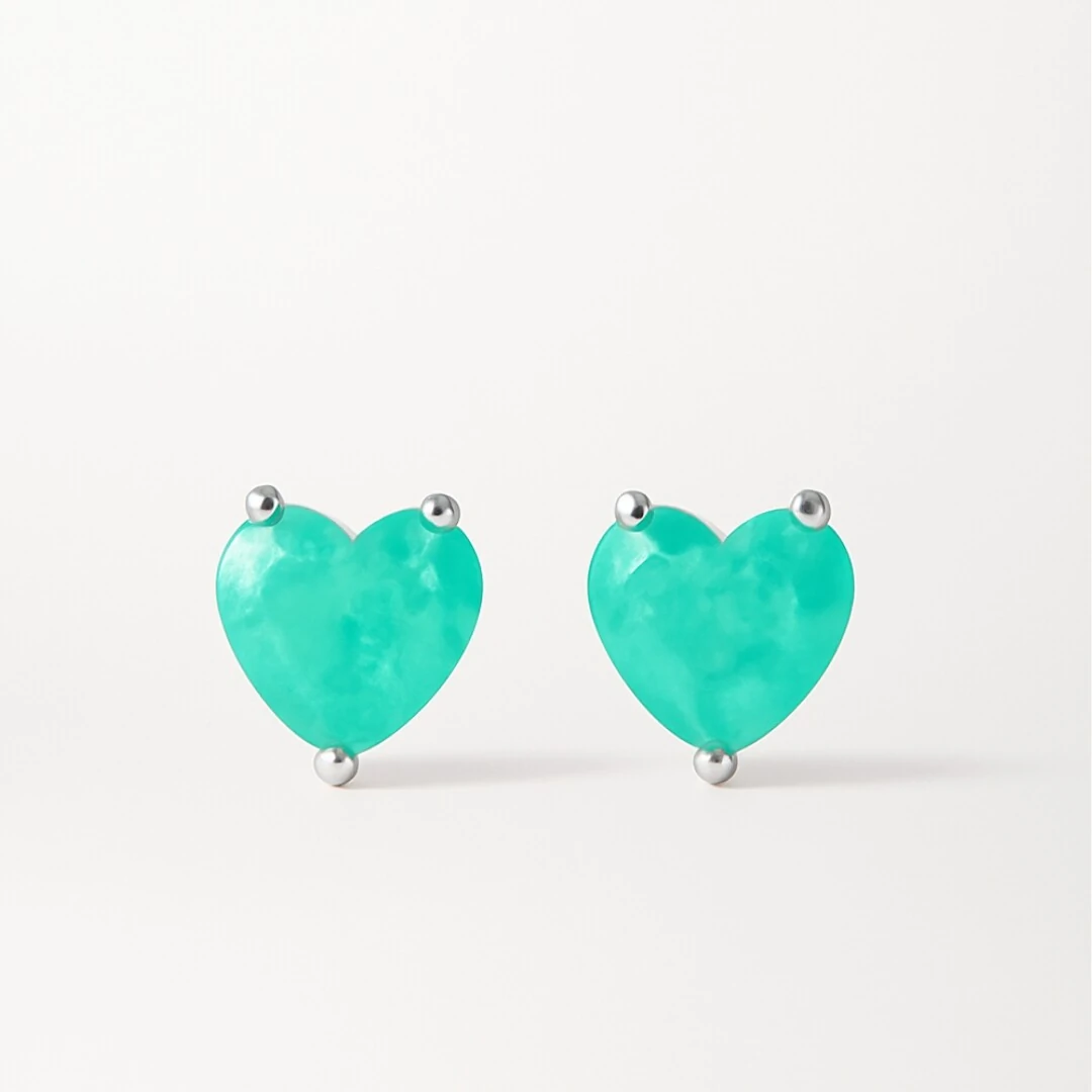 Com pedra turmalina fusion de 1 cm, o formato de coração realça o brilho e a cor vibrante da pedra, trazendo frescor e leveza à produção.