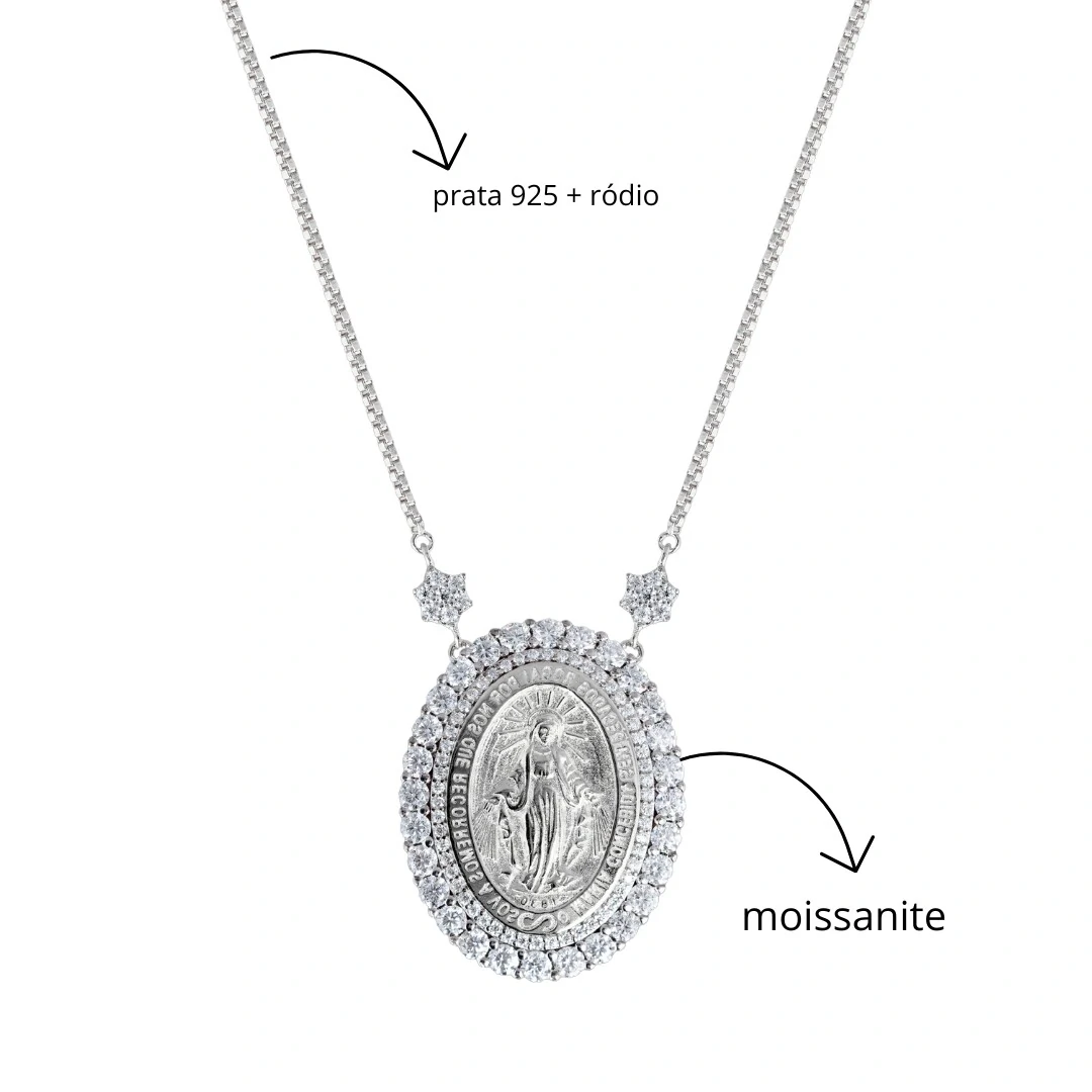 O Colar Nossa Senhora das Graças G Moissanite Prata 925 é a versão mais imponente e luminosa da coleção.
