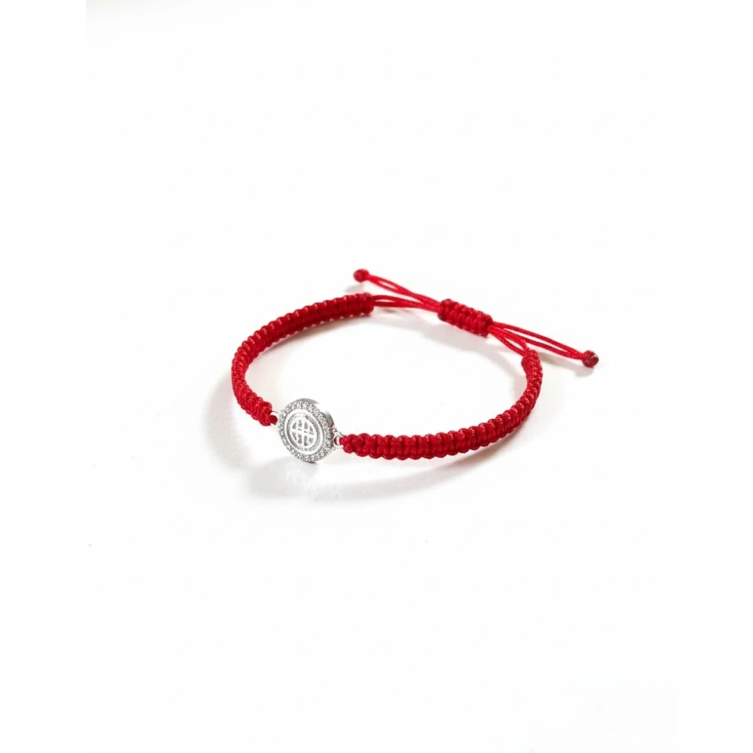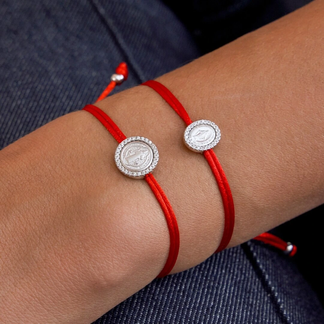 O fio encerado vermelho, além de confortável, é tradicionalmente ligado à proteção e à boa sorte, criando uma combinação perfeita entre fé e moda.