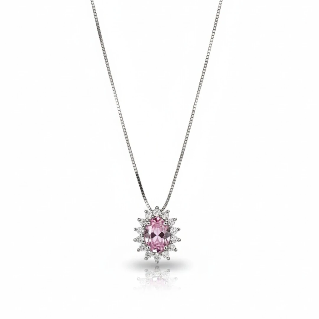 Colar Oval Kunzita Princesa Prata 925 é uma joia delicada, feminina e perfeita para iluminar o colo com suavidade e elegância.