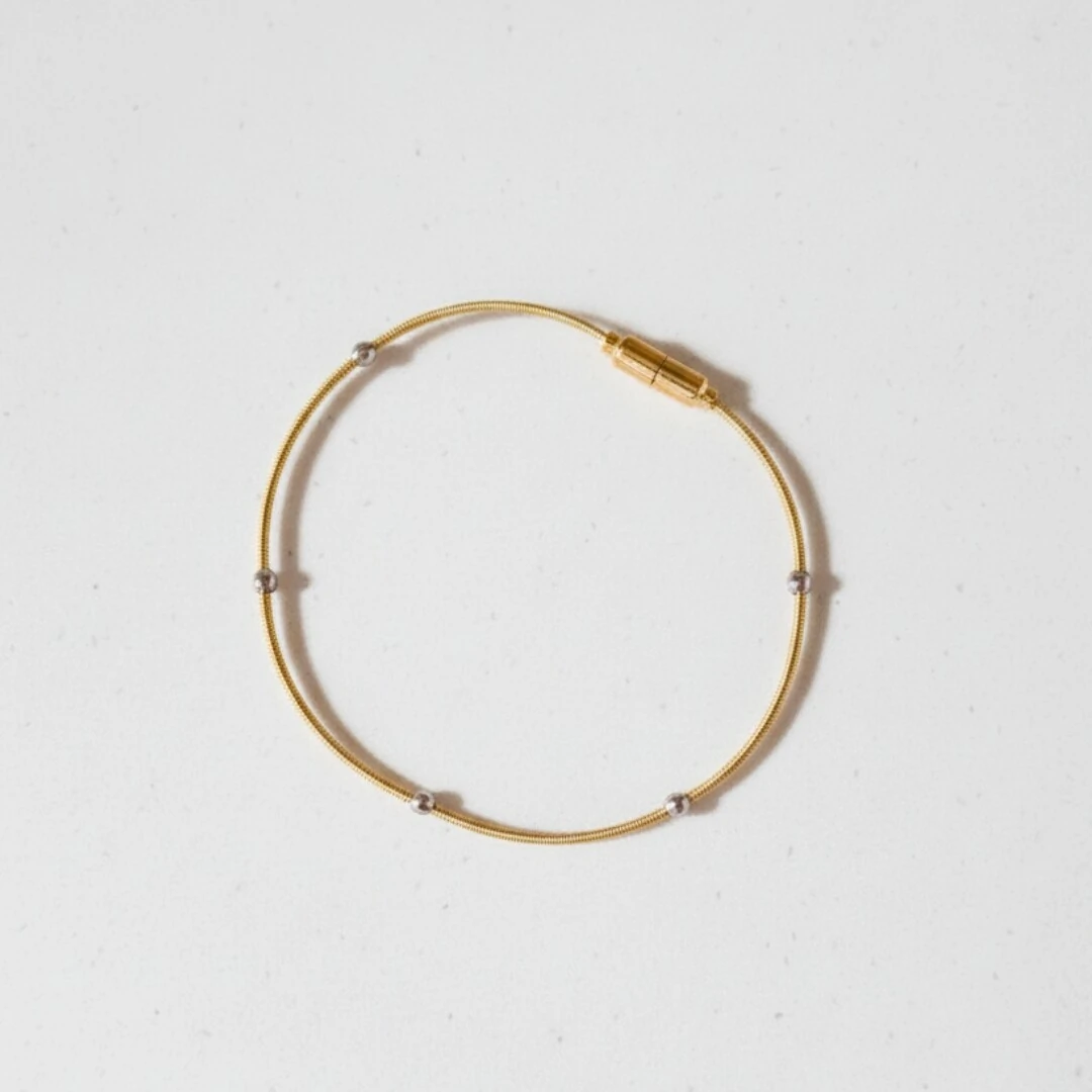 A Pulseira Corda de Violão Solitária com Bolinhas Invertidas em Banho de Ouro 18K é a peça ideal para quem ama um toque de modernidade com elegância. Inspirada nas cordas de violão, ela traz um design minimalista e atual, marcado pelas bolinhas invertidas — um detalhe sutil que faz toda a diferença no visual.