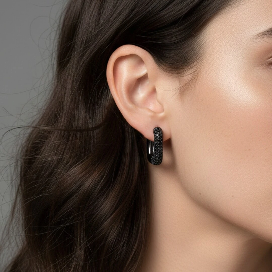 A Argola Quadrada Cravejada M Ônix em Ródio Negro é perfeita para quem busca um acessório marcante, moderno e cheio de atitude. Seu formato quadrado traz um visual contemporâneo, enquanto as zircônias ônix garantem um brilho elegante e misterioso — ideal para looks noturnos ou produções minimalistas com impacto.