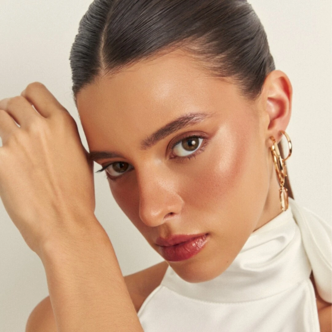 O banho de ouro 18K garante acabamento impecável e durabilidade, enquanto a tonalidade marrom do cristal cria um efeito quente e versátil — perfeito para combinações com looks neutros, terrosos ou mais glamourosos.