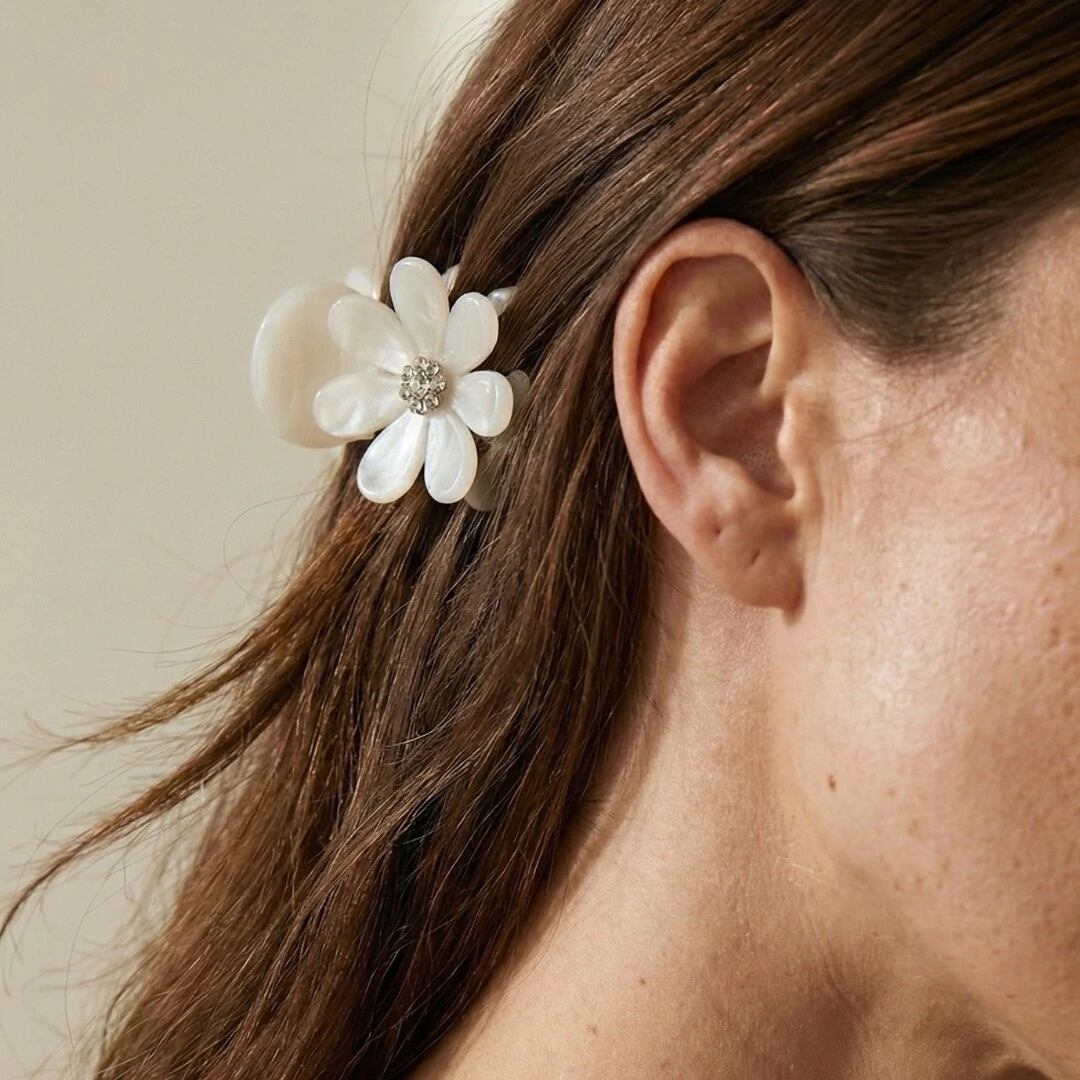 A Piranha Margarida Madrepérola é um acessório delicado e sofisticado, ideal para quem busca elegância com um toque romântico no dia a dia.