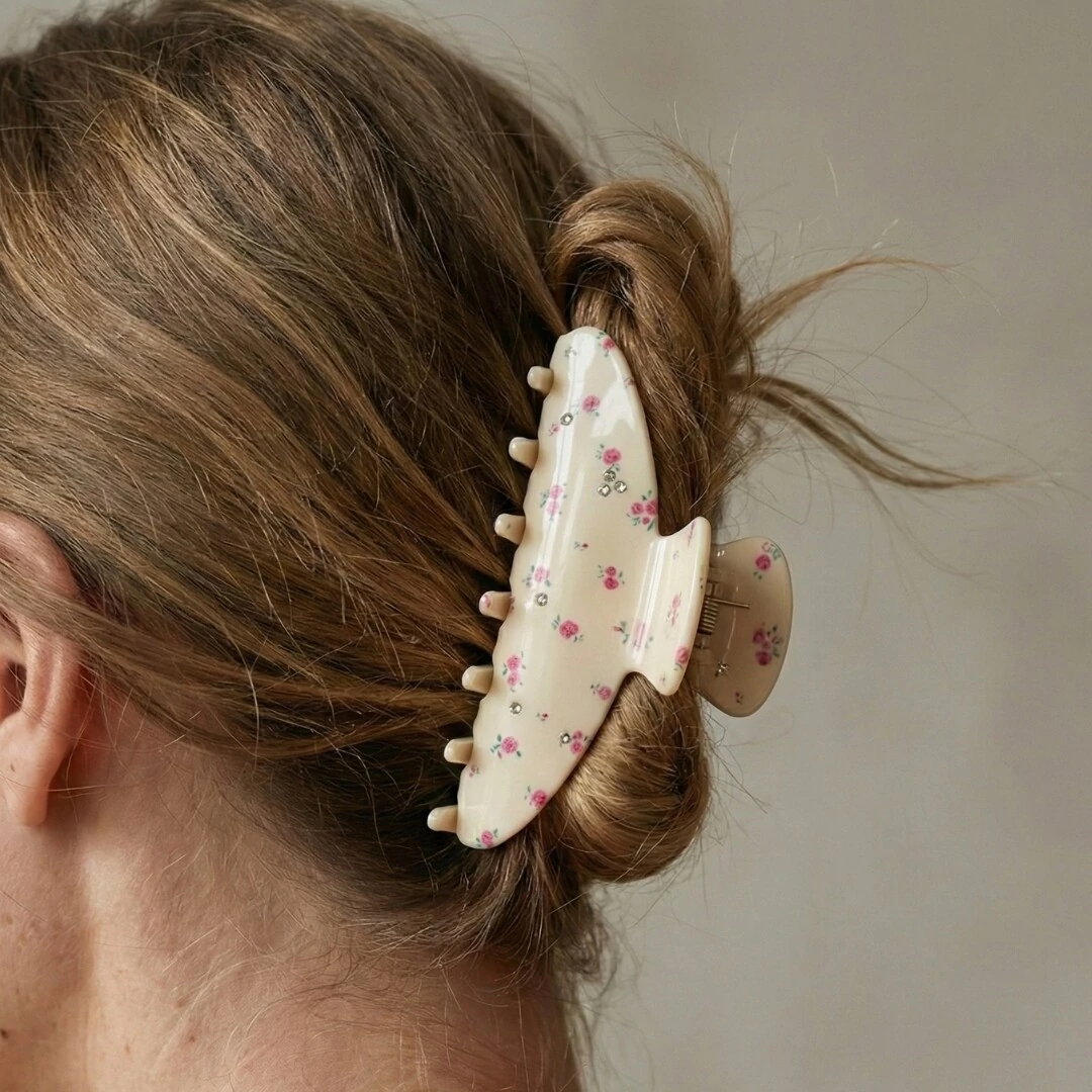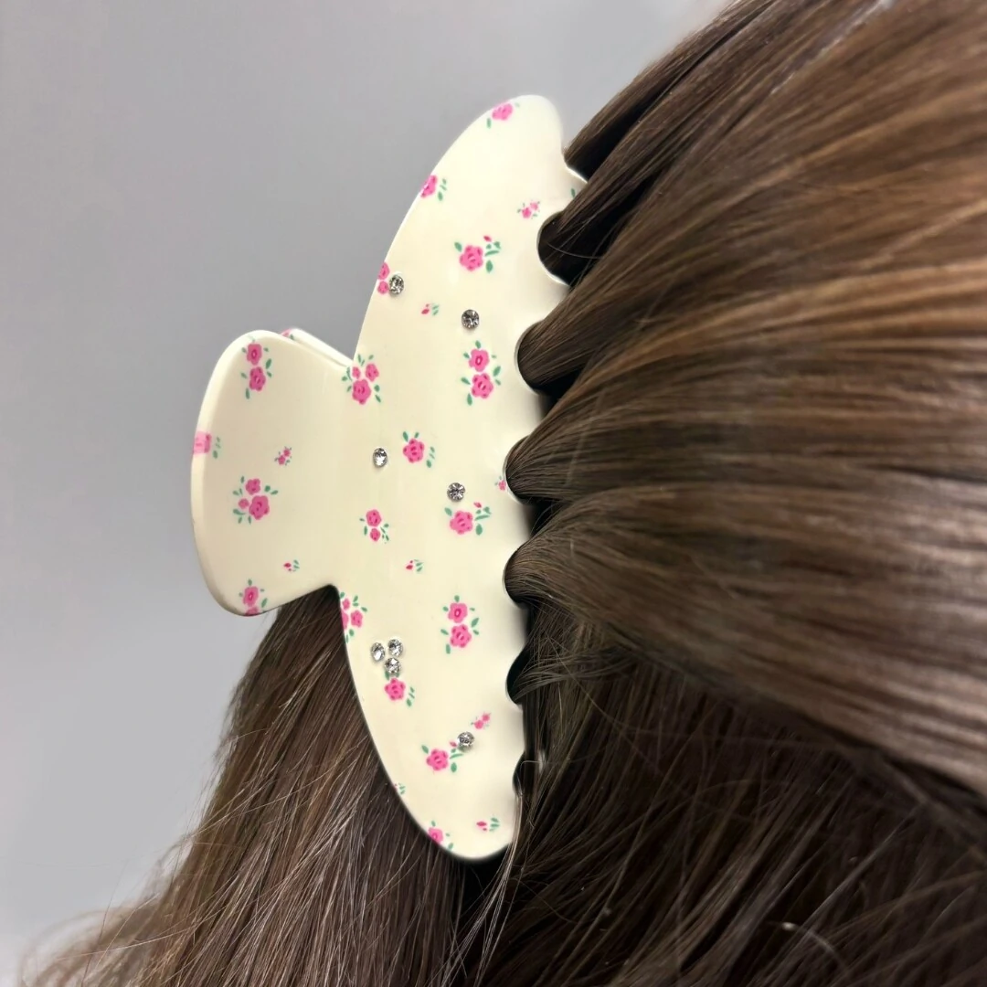 A Piranha Rosinhas é aquele acessório que transforma qualquer penteado com delicadeza e charme. Produzida em acetato de alta qualidade, ela traz uma estampa floral de pequenas rosas em tom cru, criando um visual romântico, leve e atemporal.