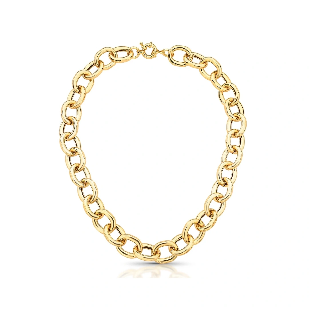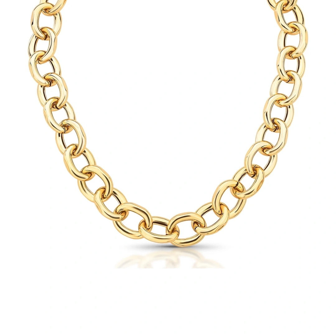 Com design clean e acabamento liso, a corrente é formada por elos ovais, que garantem presença e sofisticação sem excessos. O banho de ouro 18K confere brilho elegante e um visual refinado, tornando a peça perfeita para uso diário ou para compor produções mais elaboradas.