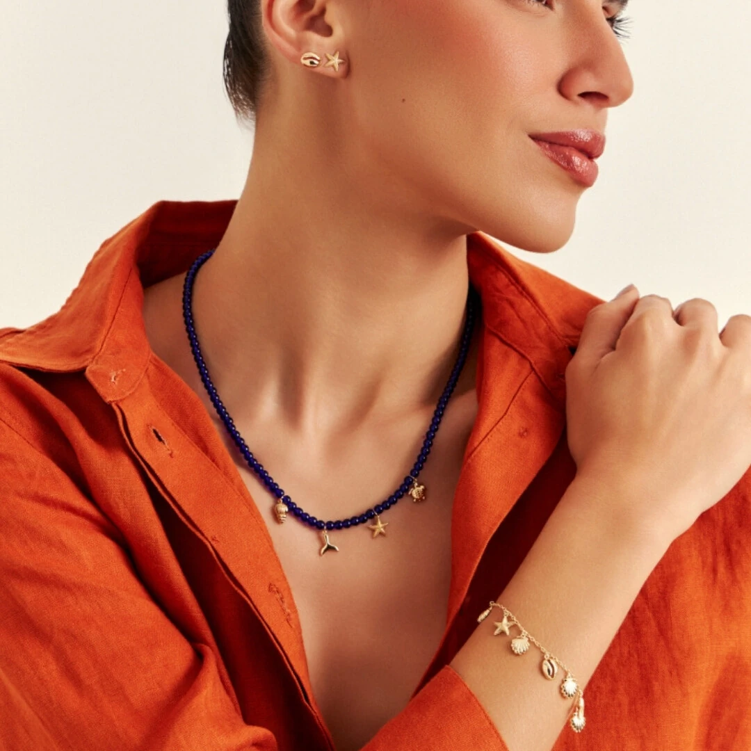 A Pulseira Concha, Búzios e Estrela com Banho de Ouro 18K tem aquela vibe fresh que lembra sol, mar e leveza. Uma peça delicada, moderna e cheia de charme.