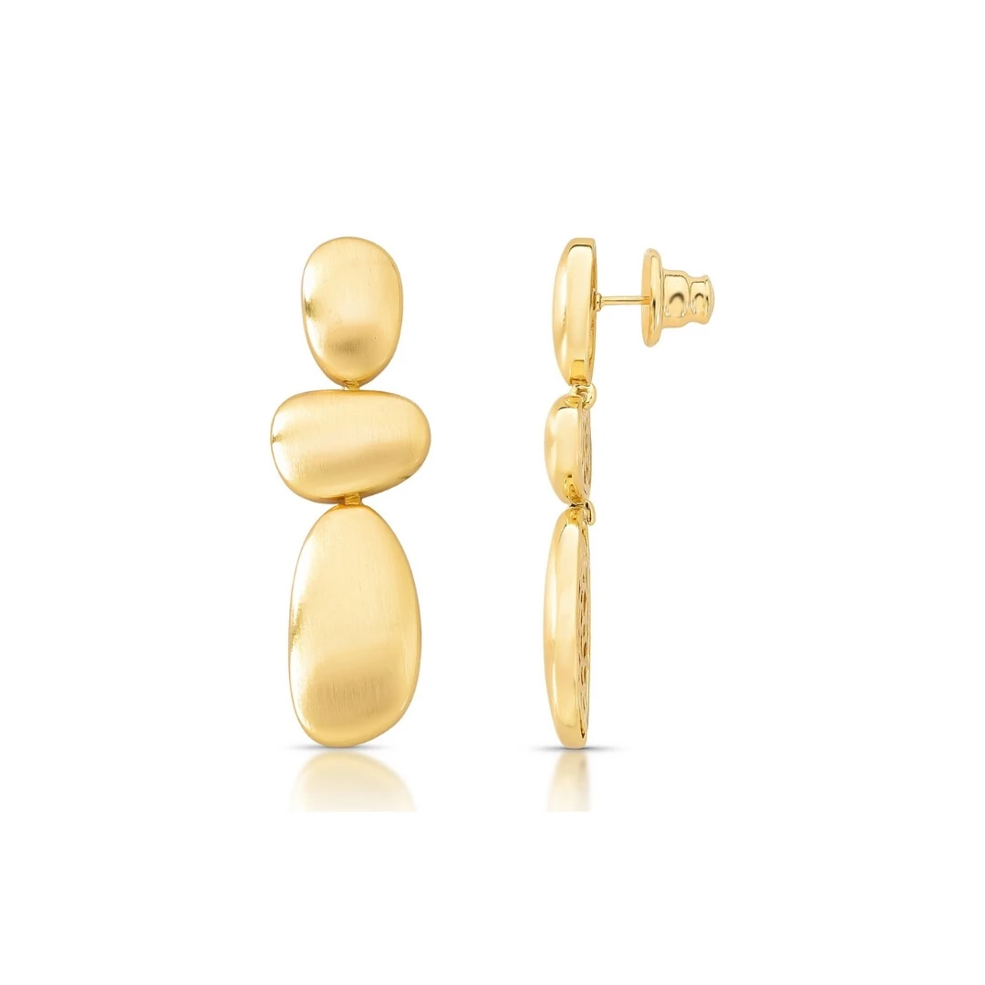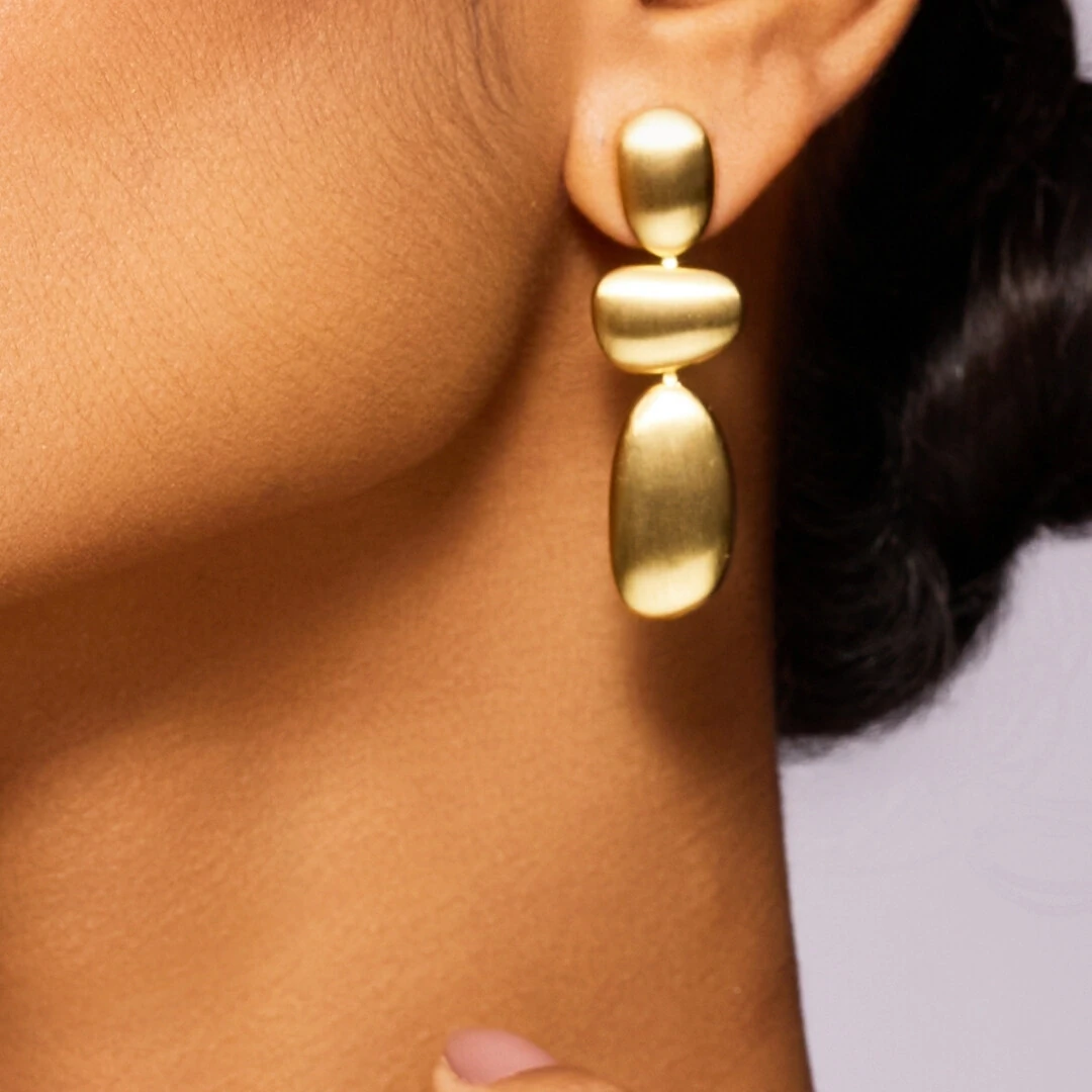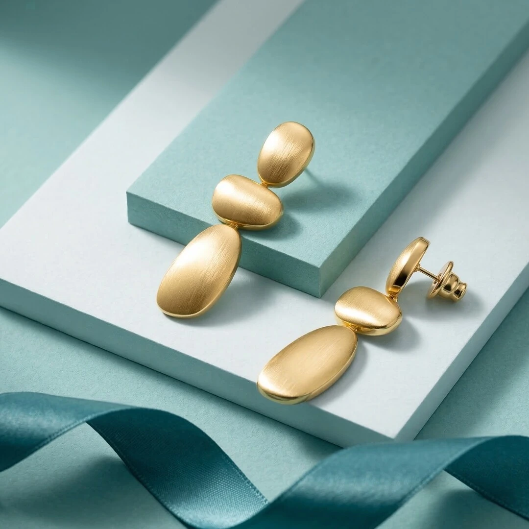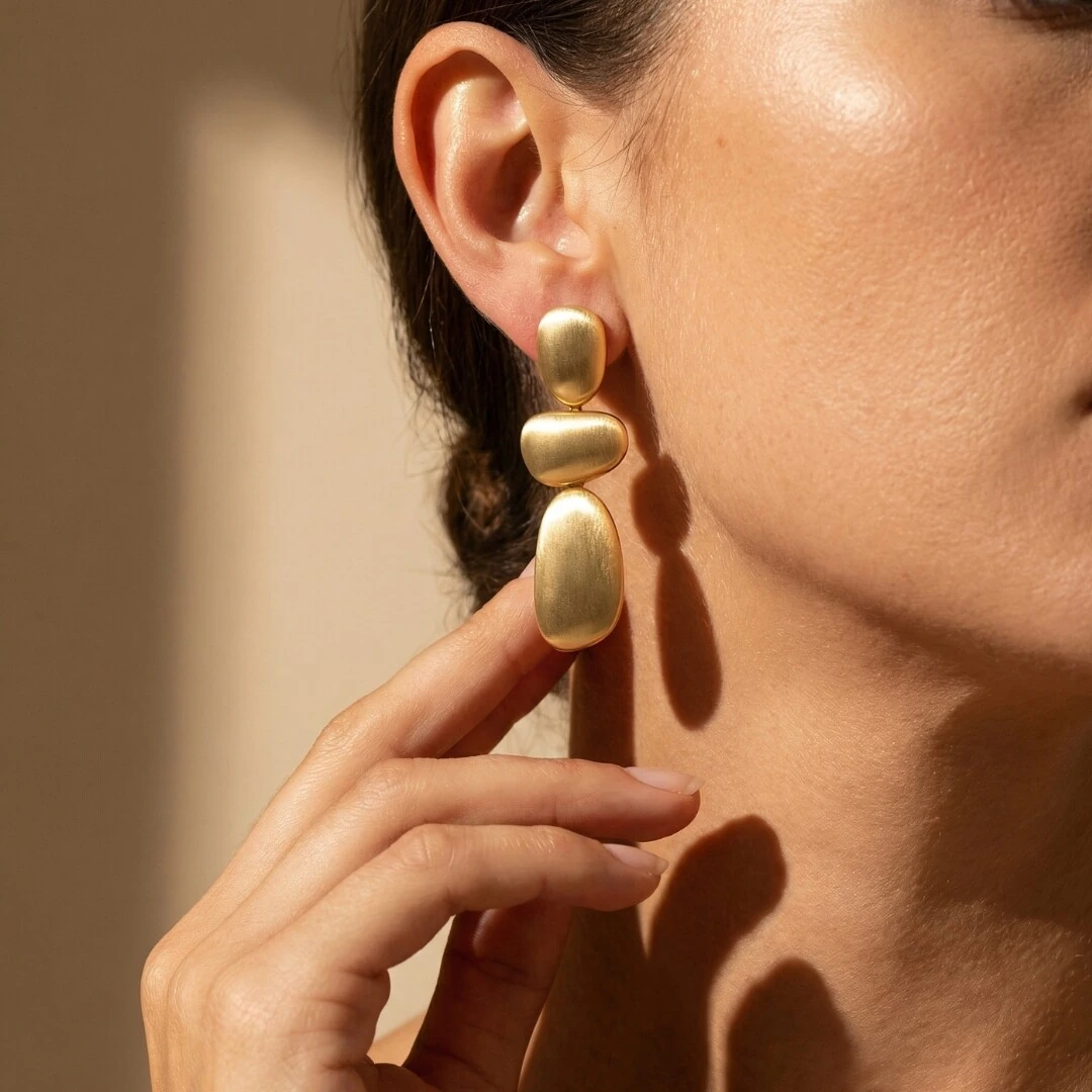 O Brinco Pêndulo Fosco Duna é aquele tipo de peça que muda tudo. Com design orgânico e três volumes que se movem suavemente, ele traz leveza, sofisticação e aquele efeito uau que aparece no espelho e fica na memória.
