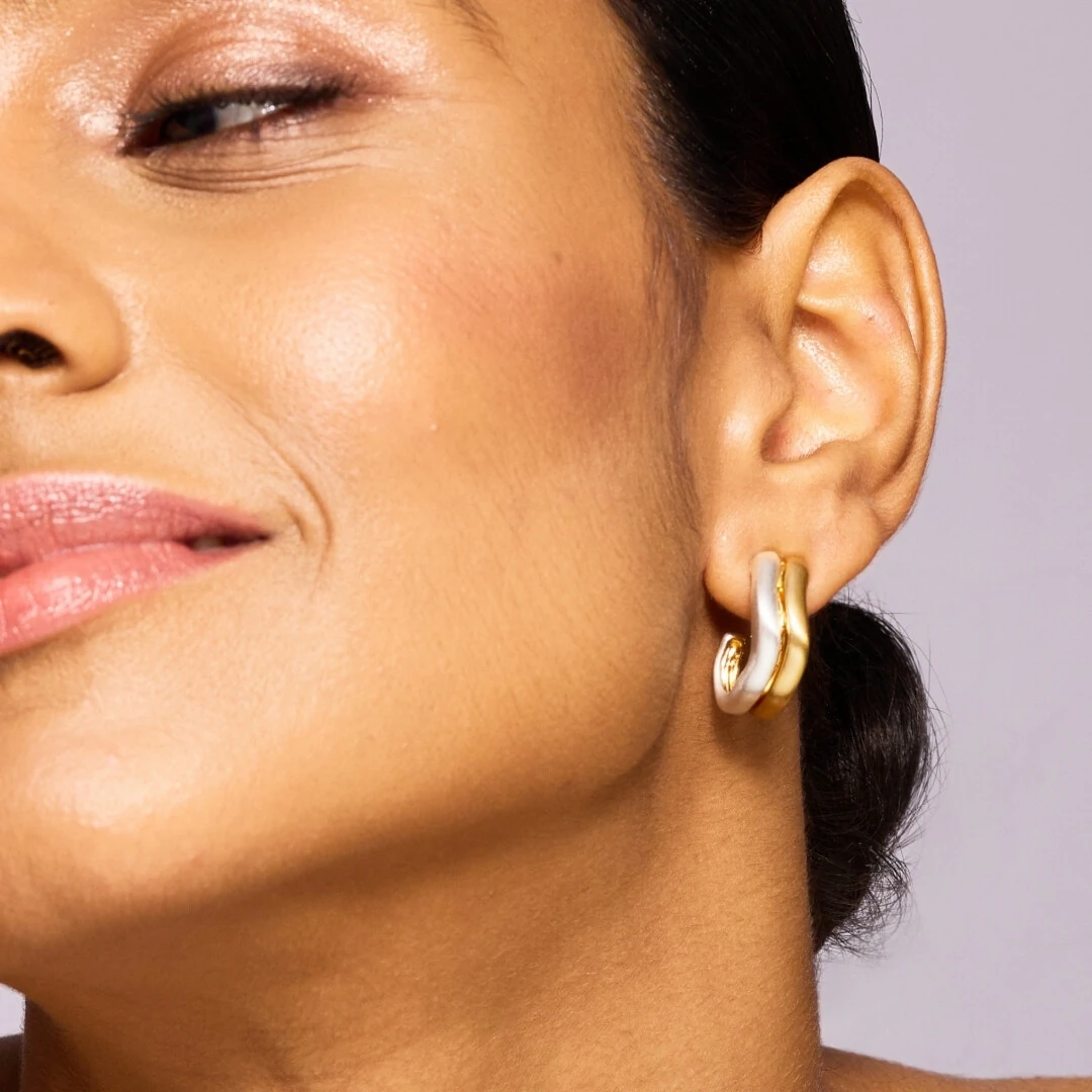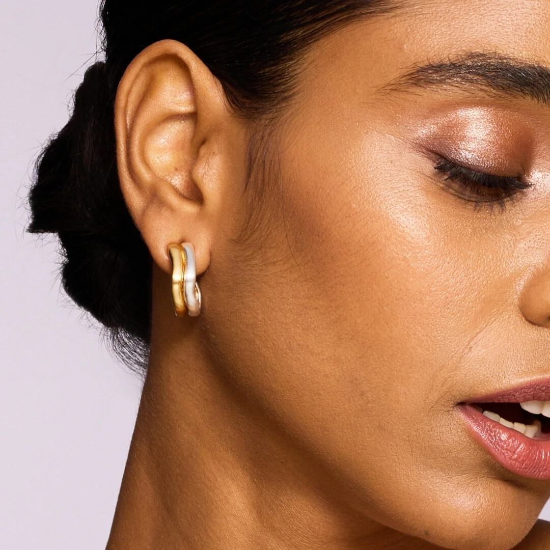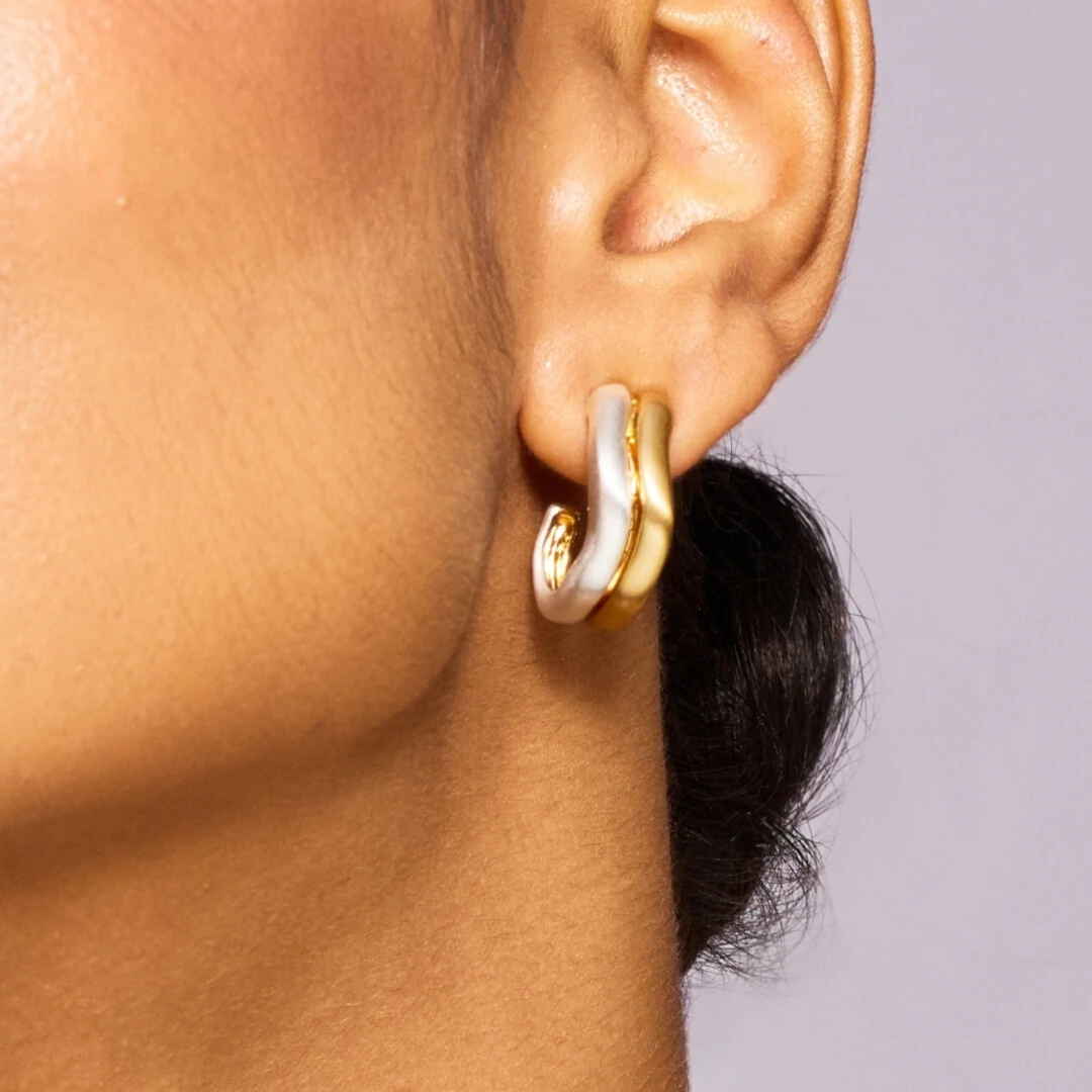 A Meia Argola Curva Mix Fosca é pra quem não gosta de escolher só um estilo. Com design orgânico e acabamento acetinado, ela une o dourado do ouro 18K com o brilho elegante do ródio branco na mesma peça.