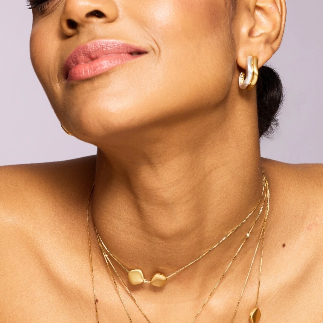 O resultado é um brinco moderno, atual e extremamente versátil, perfeito pra misturar com tudo o que você já tem. Ele traz aquele contraste chic que deixa o look interessante sem esforço.