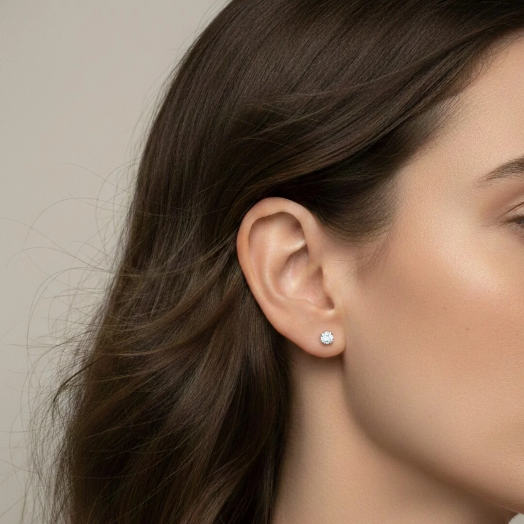O Brinco Ponto de Luz Moissanite 3 mm em Prata 925 é a definição de delicadeza com brilho na medida certa.