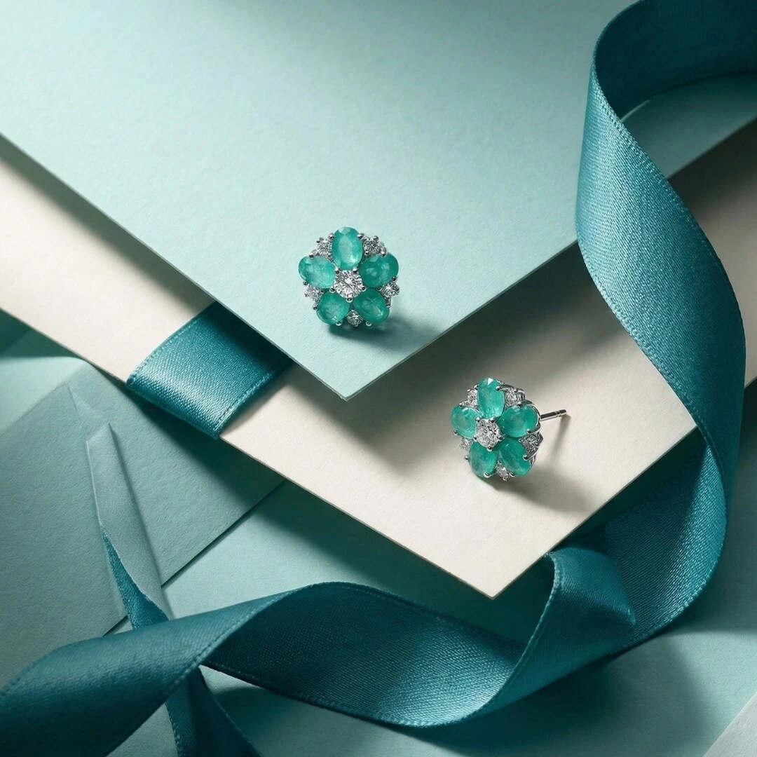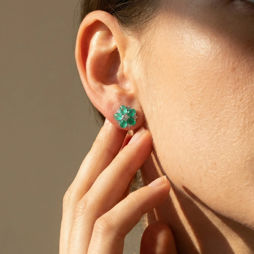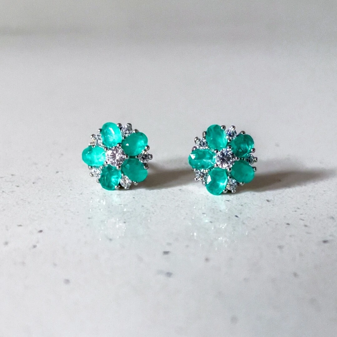 O Brinco Flor Esmeralda Fusion Colombiana em Prata 925 é uma joia delicada que combina elegância e sofisticação em um design clássico.
