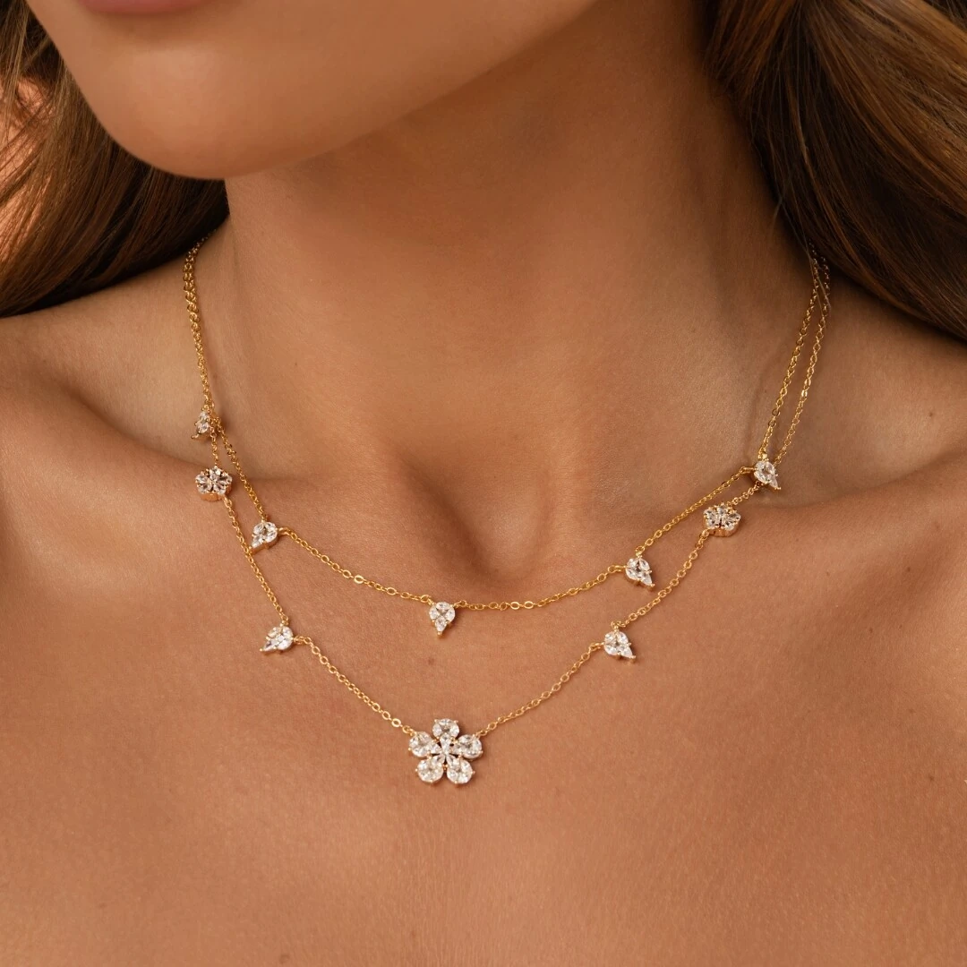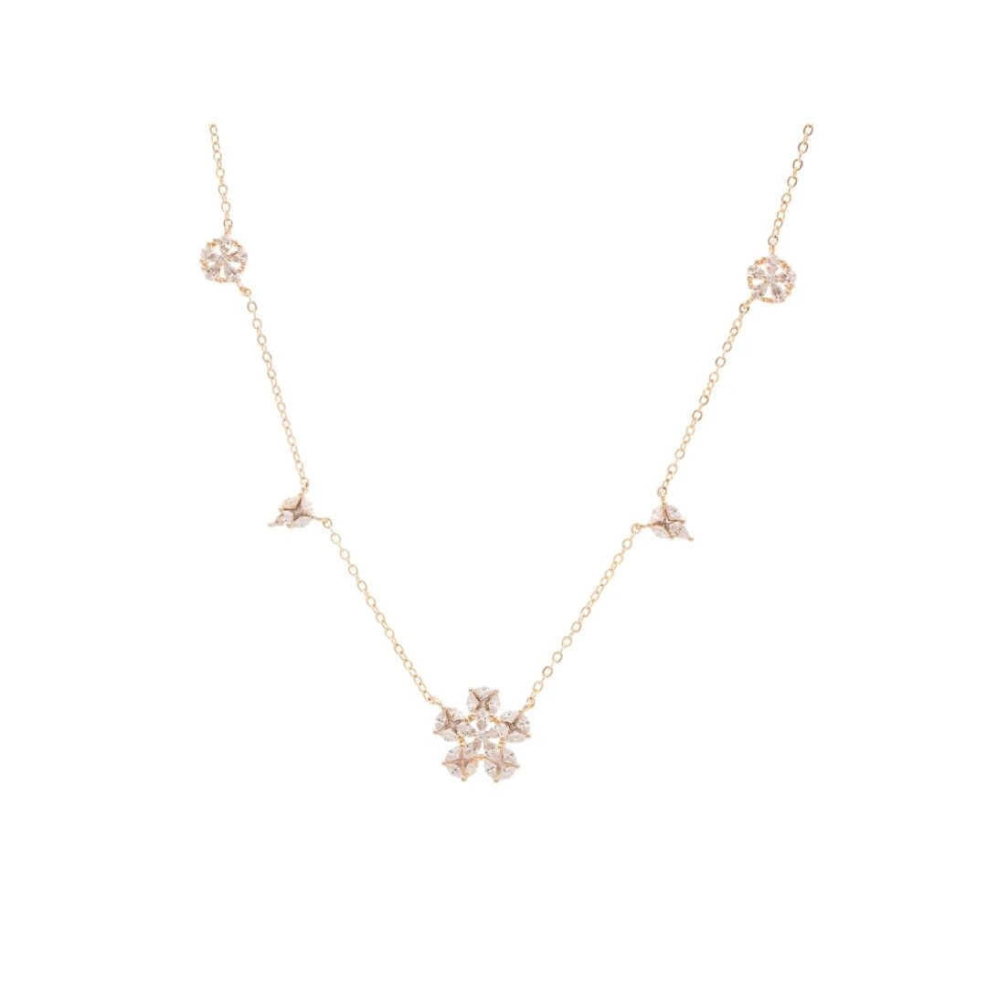 Colar Flor de Zircônias Banho de Ouro 18K