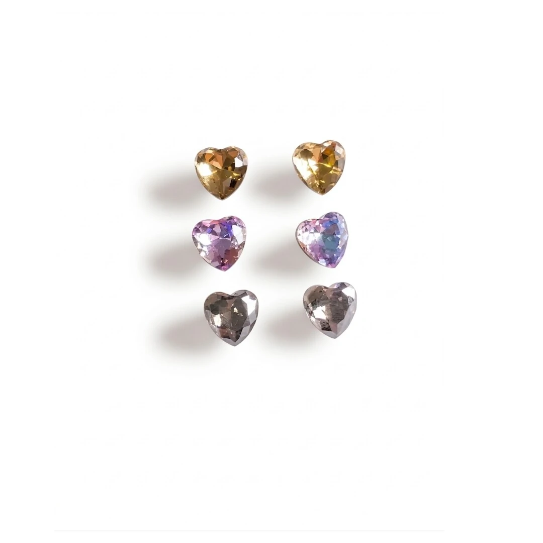 Trio de Brincos Lapidação Coração - 9mm com Banho de Ródio Branco