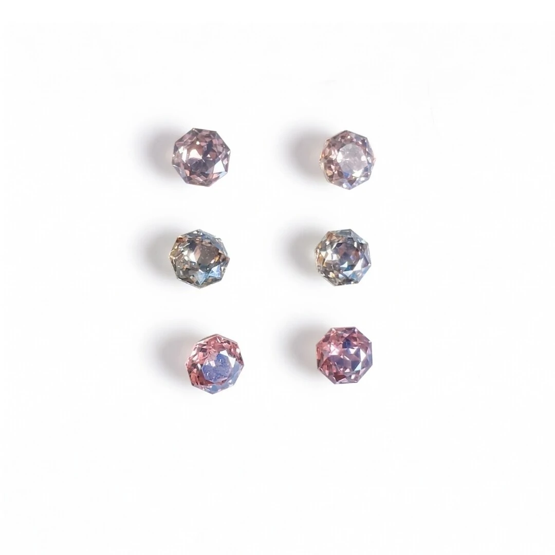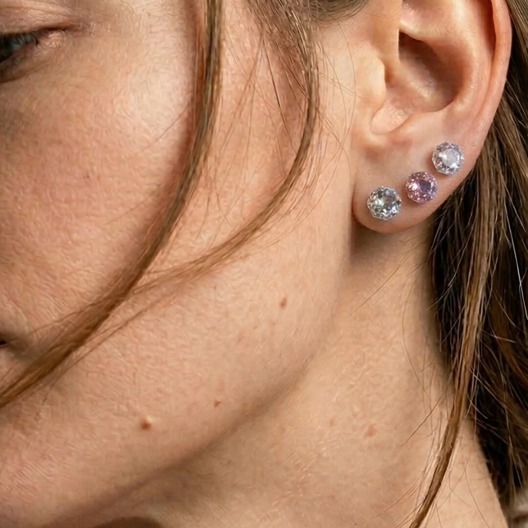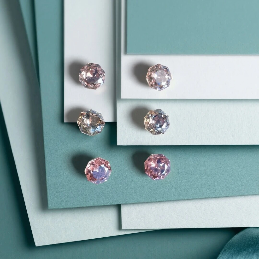 Cores e brilho! Conjunto com 3 brincos coloridos com lapidação hexagonal brilhante, medindo 6mm. As cores variadas (rosa, lilás e cristal) oferecem versatilidade para diferentes looks e preferências. O banho de ródio branco garante durabilidade e brilho duradouro.