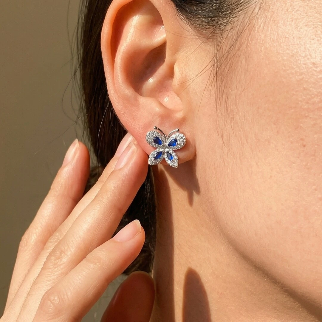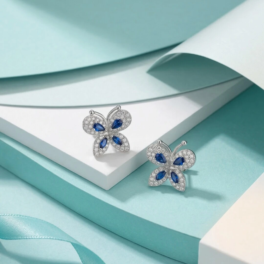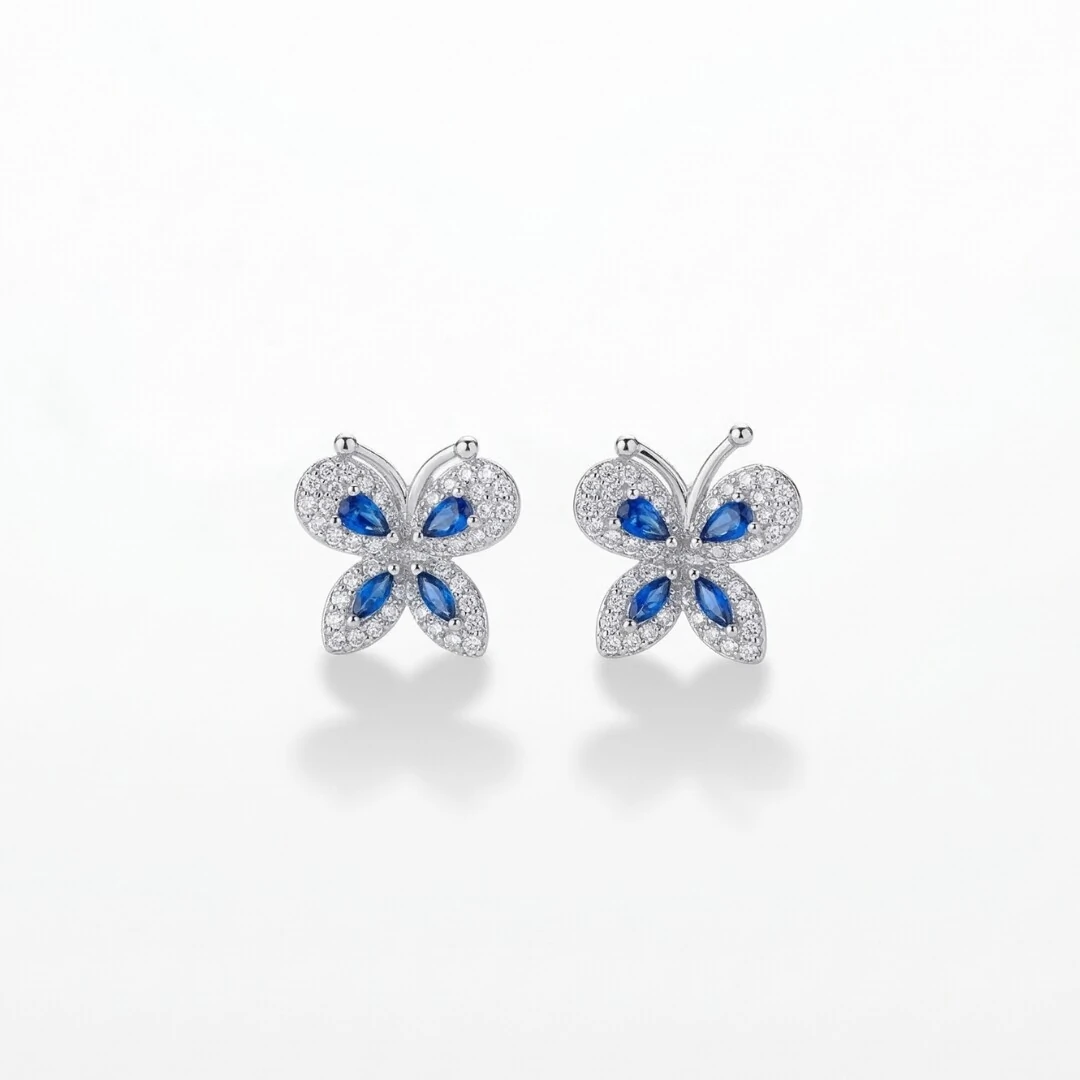 Brinco Borboleta Zircônia Safira - Prata 925 com Banho de Ródio Branco