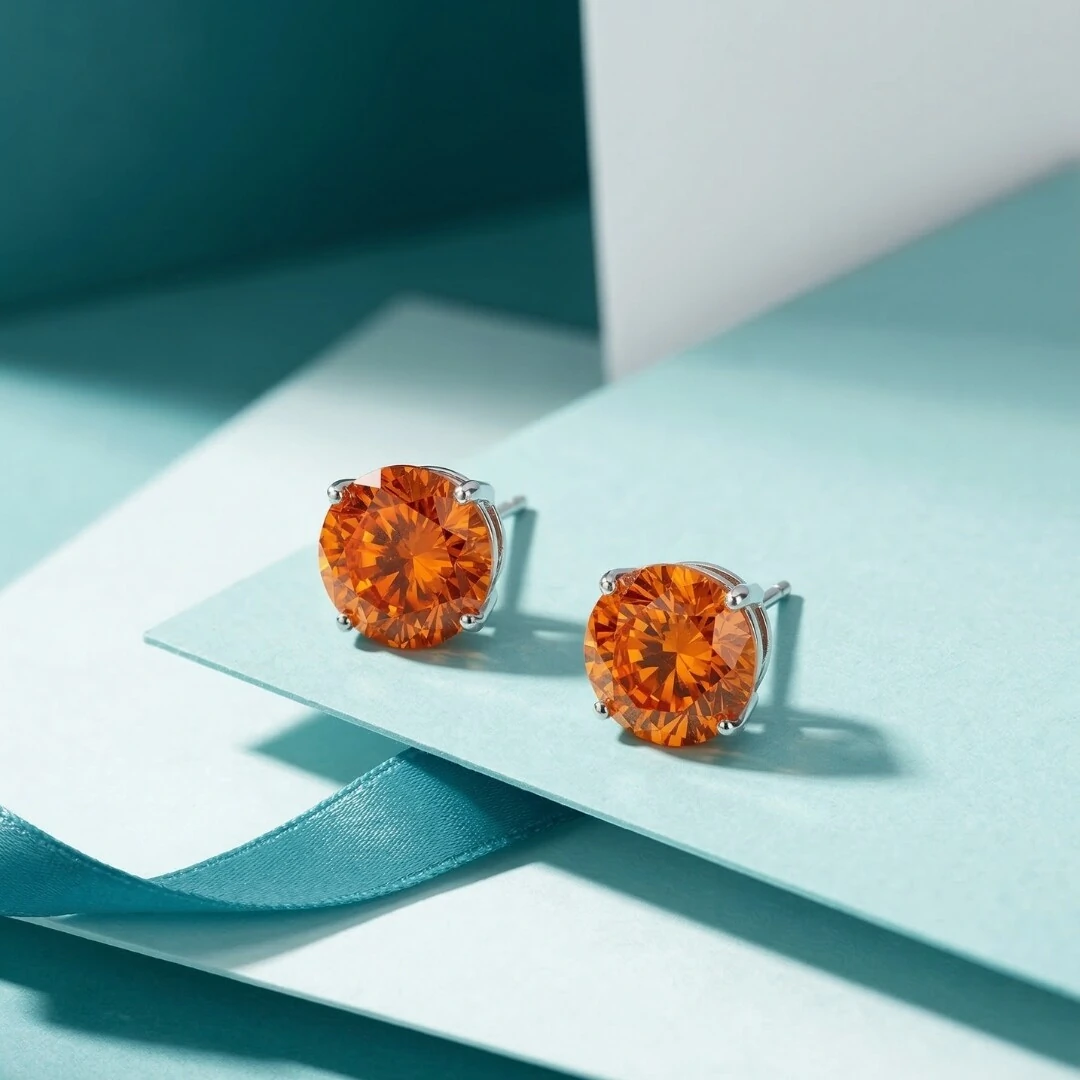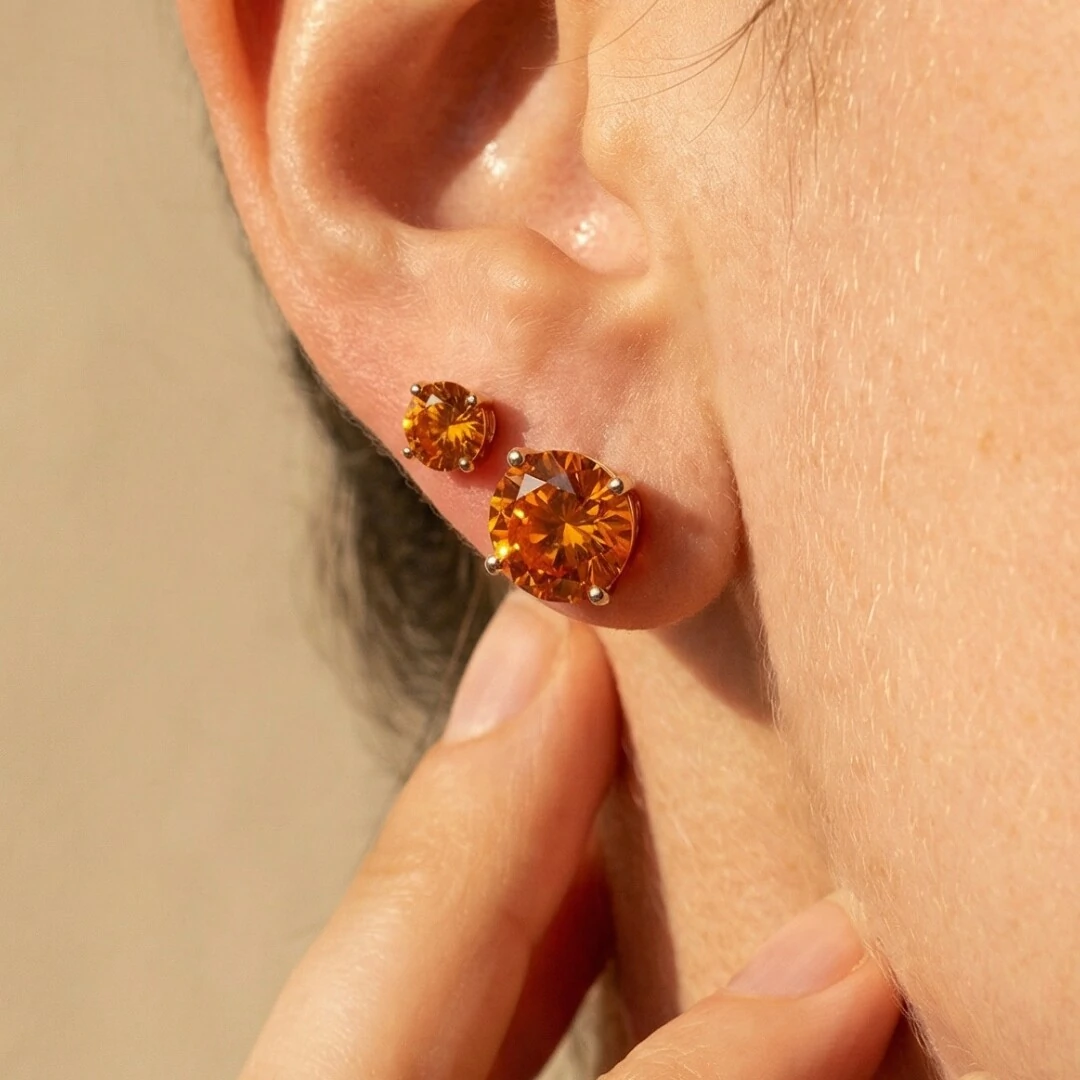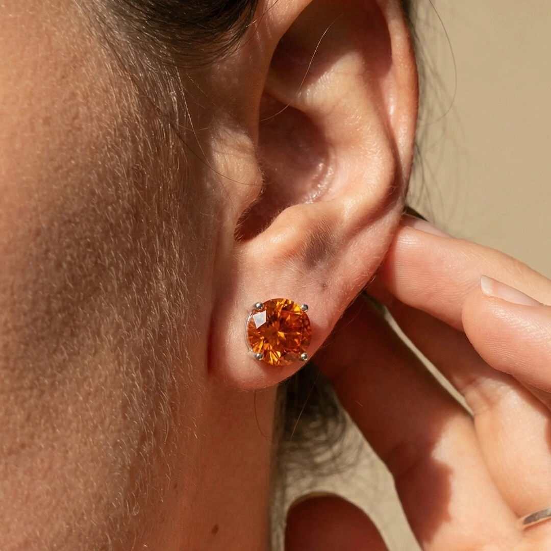 Brilho sofisticado! Brinco solitário em tom aperol (laranja quente) medindo 12mm, com lapidação que cria um brilho intenso e elegante. Feito em prata 925 com banho de ródio branco, oferece durabilidade e um acabamento sofisticado.