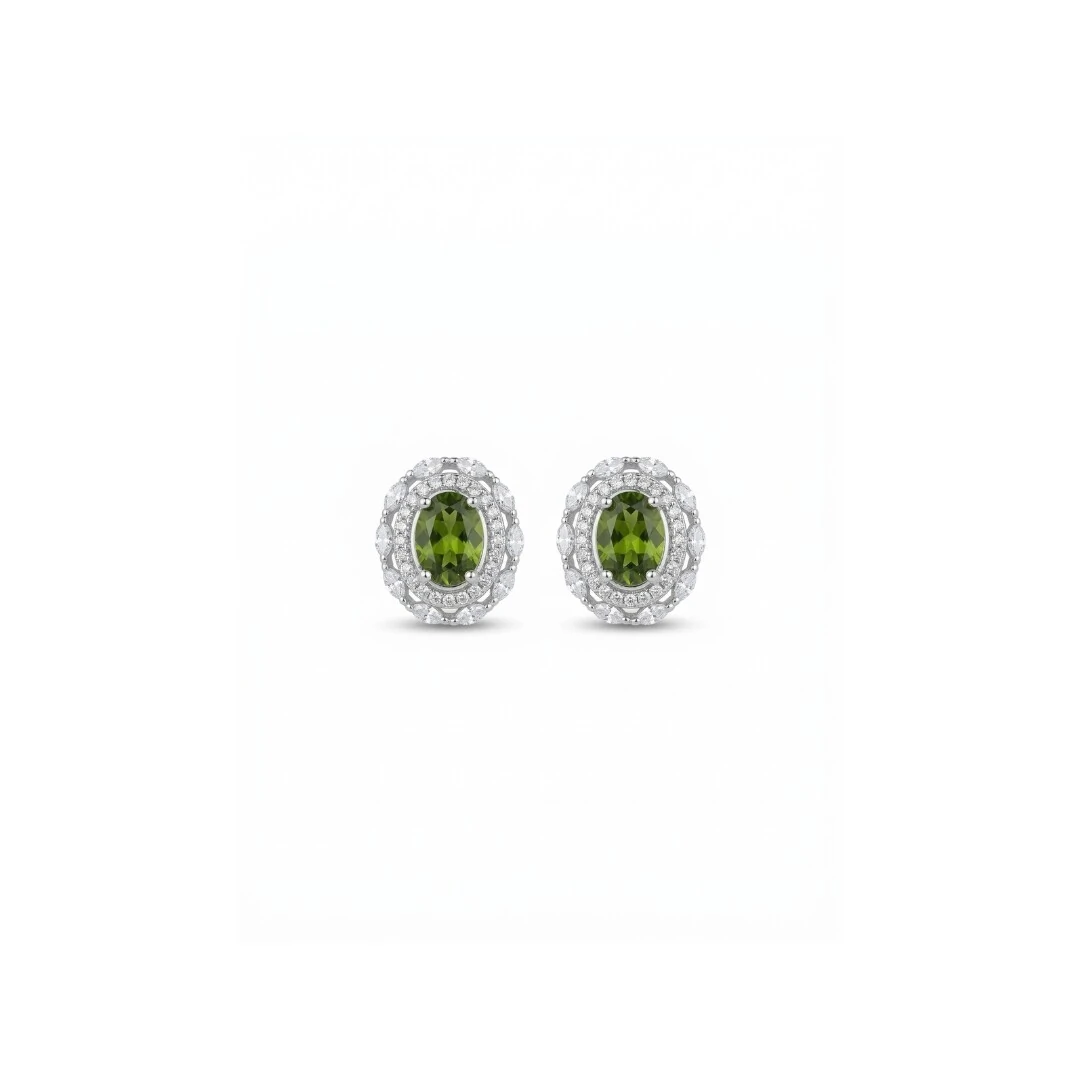 Elegância natural! Brinco oval com peridoto verde no centro cravejado de zircônia branca ao redor, criando um contraste sofisticado. Medida 1,9x1,1cm. Feito em prata 925 com banho de ródio branco, oferece durabilidade e acabamento premium.