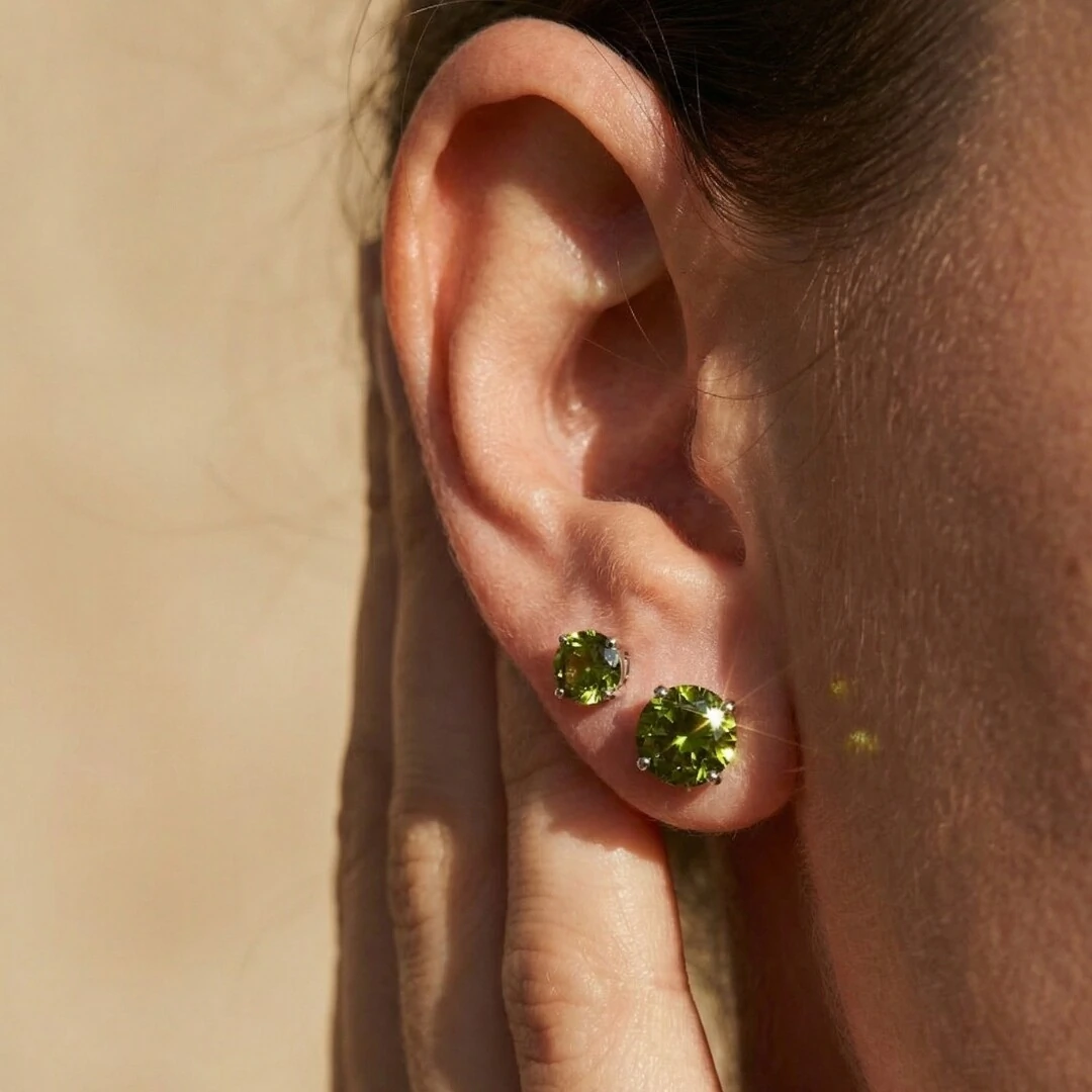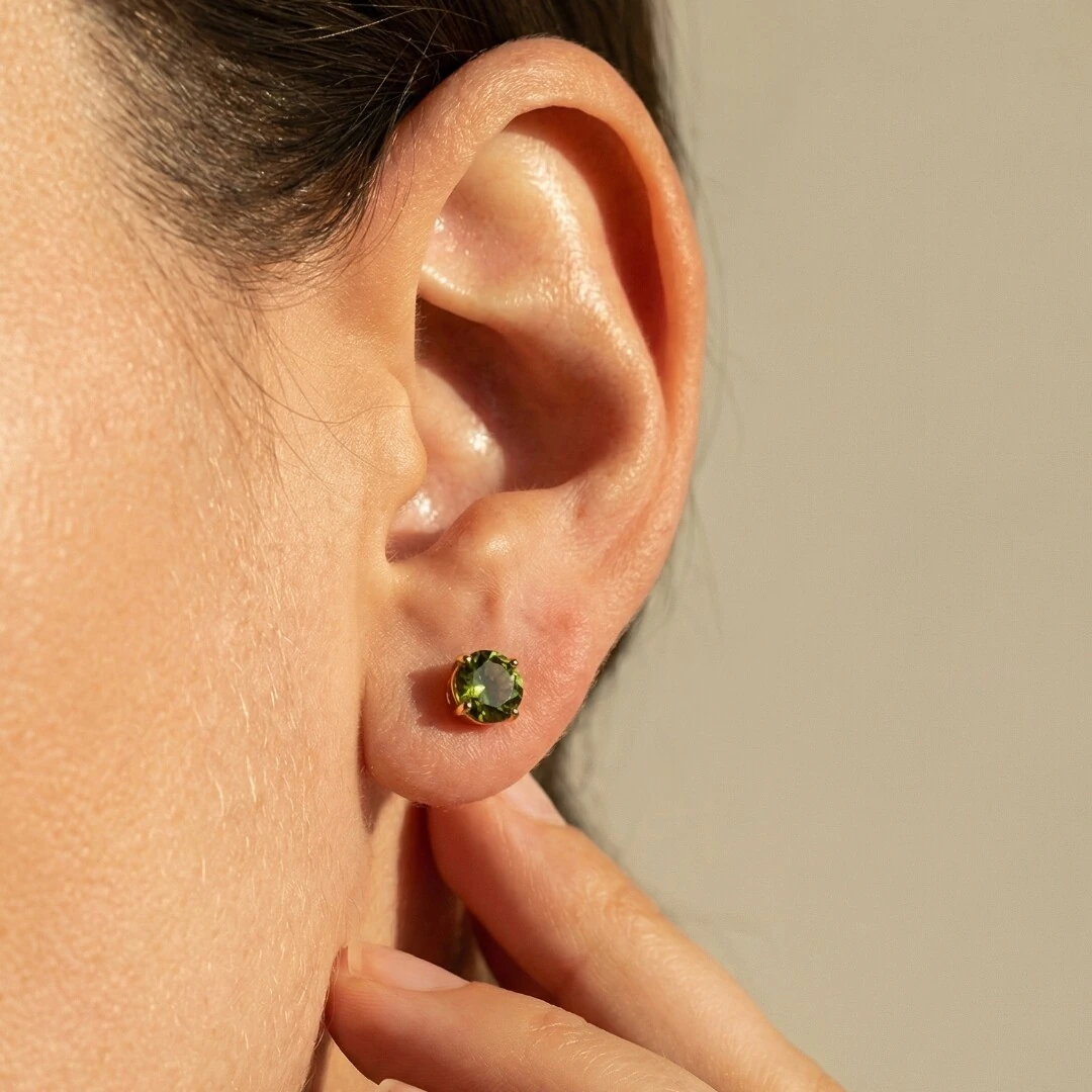 Brilho natural! Brinco solitário em peridoto verde medindo 6mm, com lapidação que cria um brilho intenso e elegante. Feito em prata 925 com banho de ródio branco, oferece durabilidade e um acabamento sofisticado.